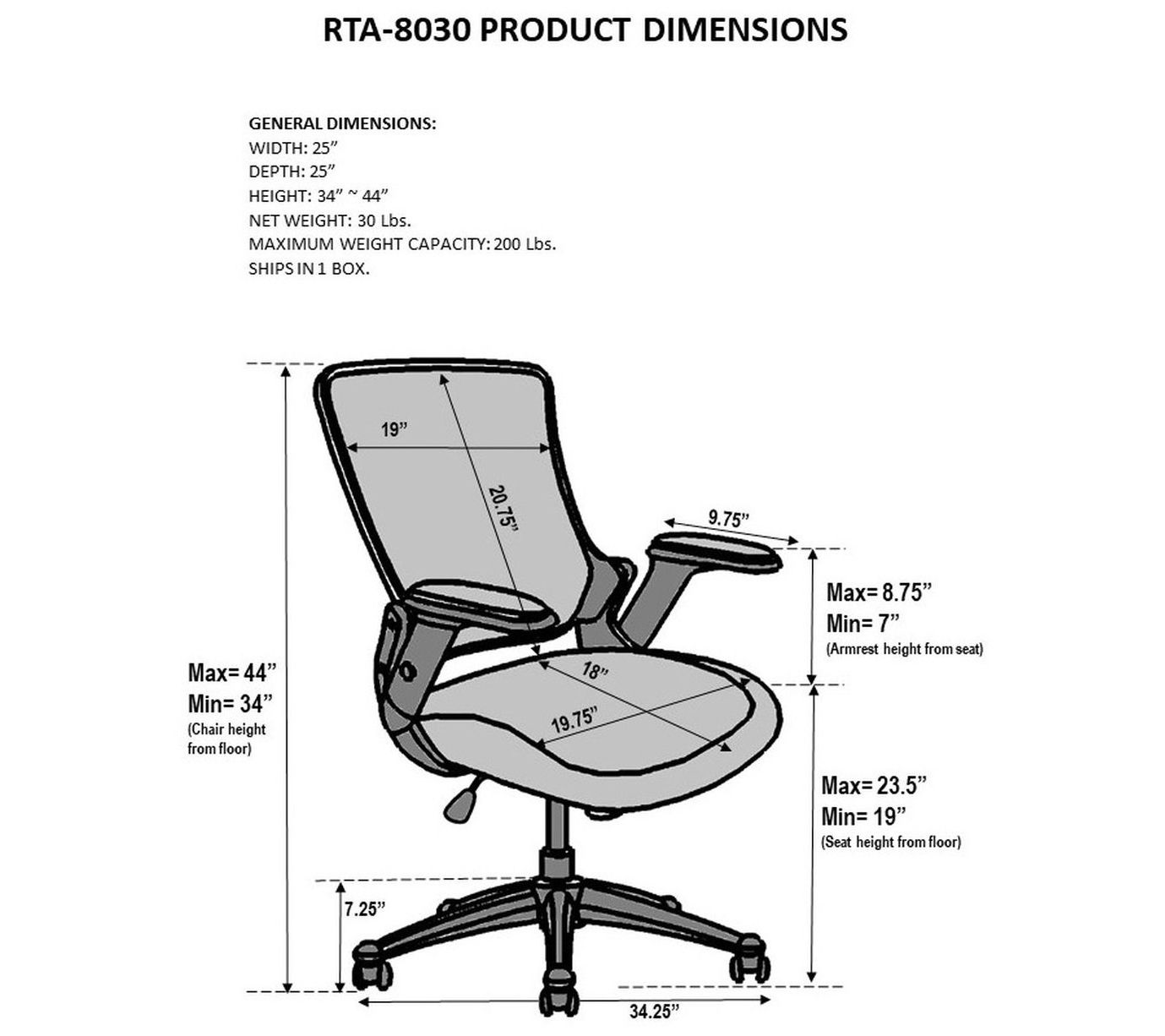 Techni Mobili Mesh Task Chair W/ Height Adjustable Arms