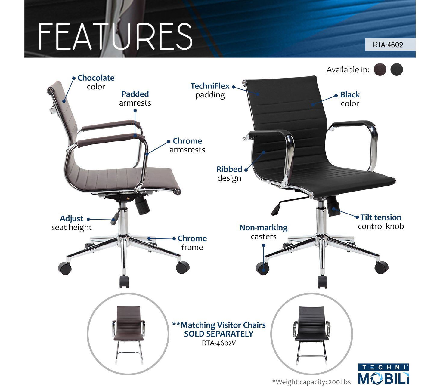 Techni Mobili Modern Medium Back Executive Chair