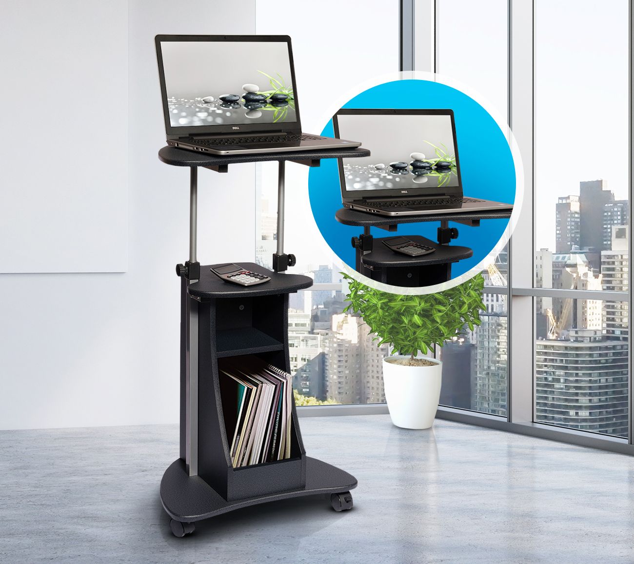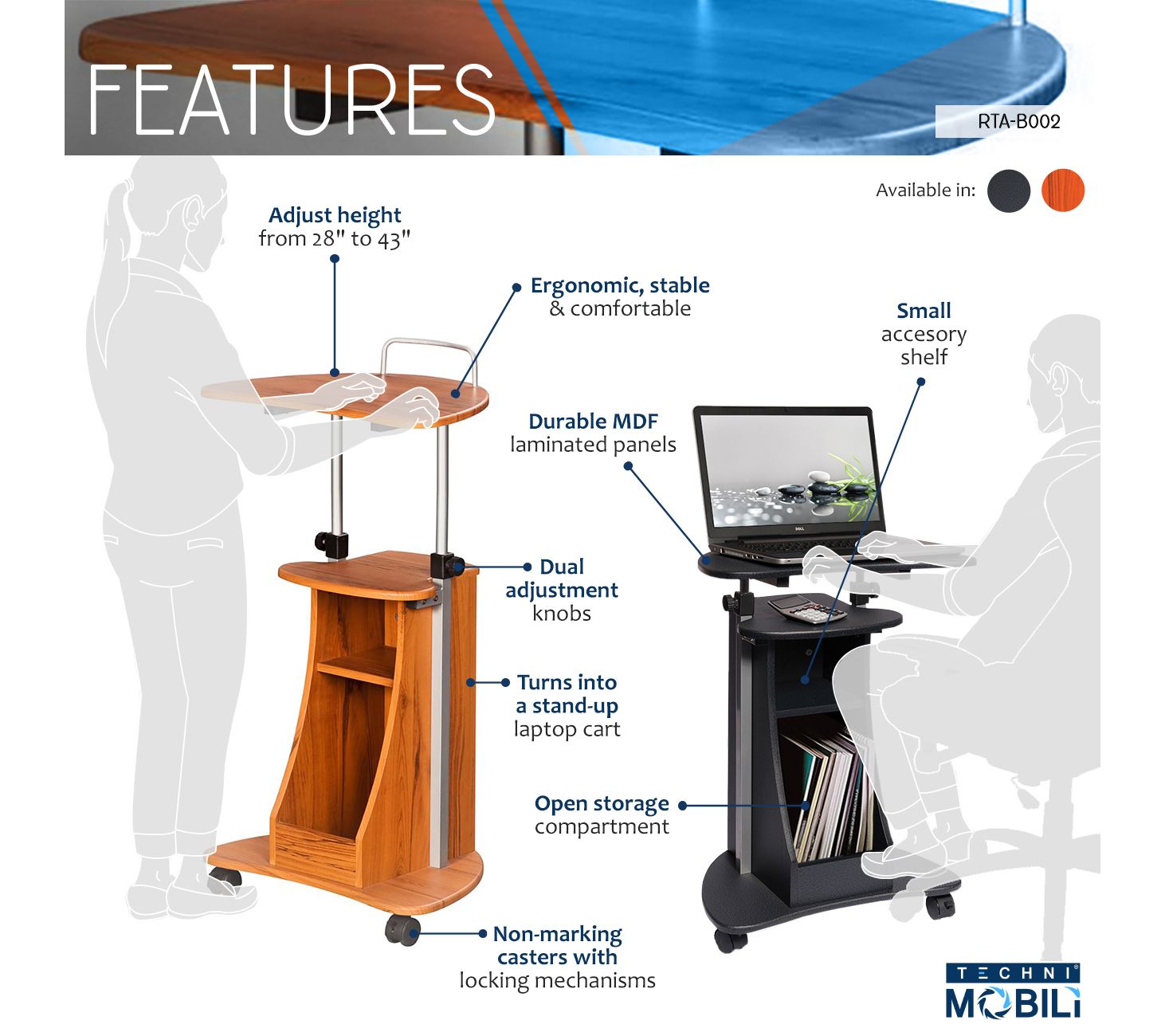 Techni Mobili Sit-to-Stand Rolling AdjustableLaptop Cart