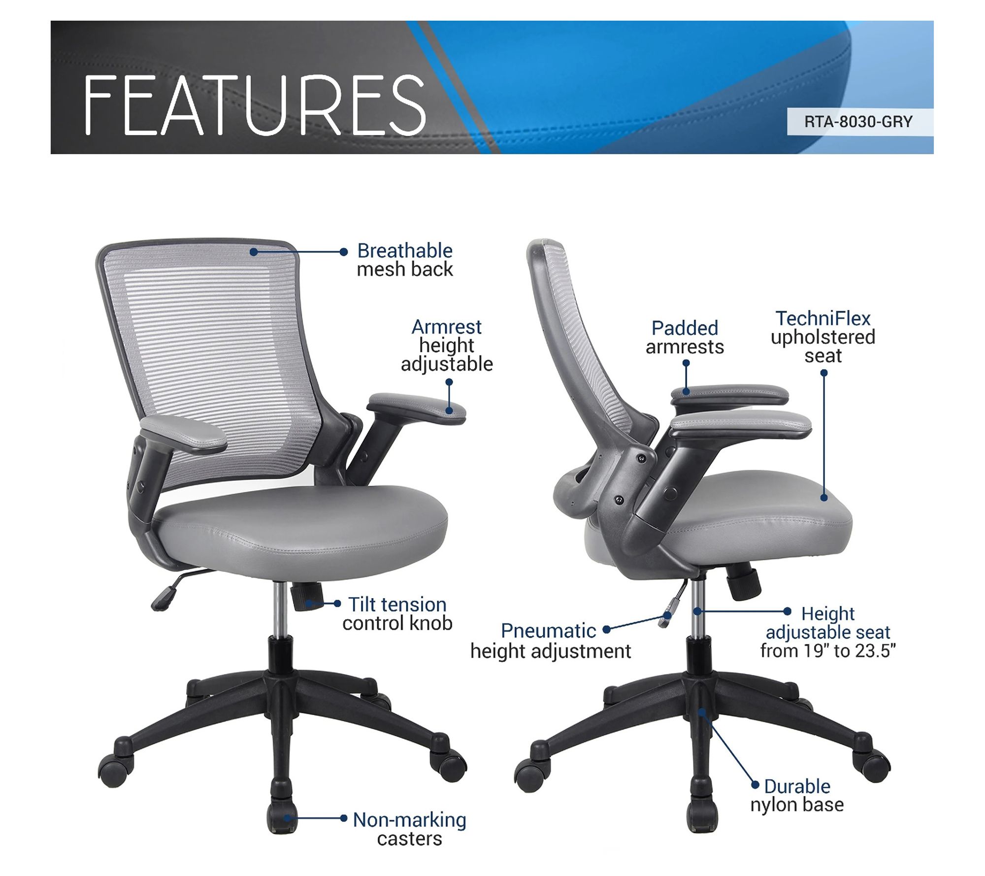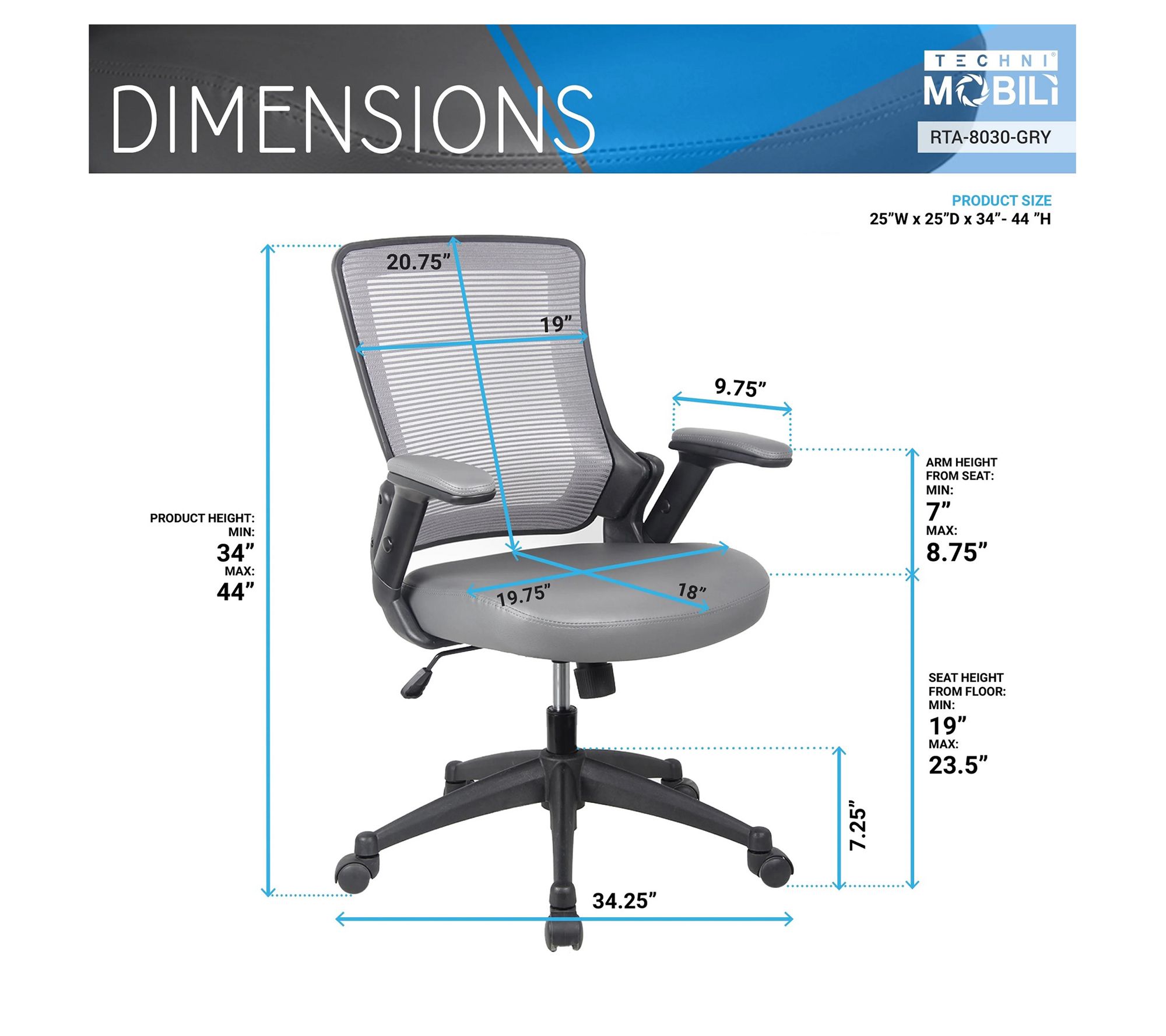 Techni Mobili Task Office Chair with Height Adjustable Arms