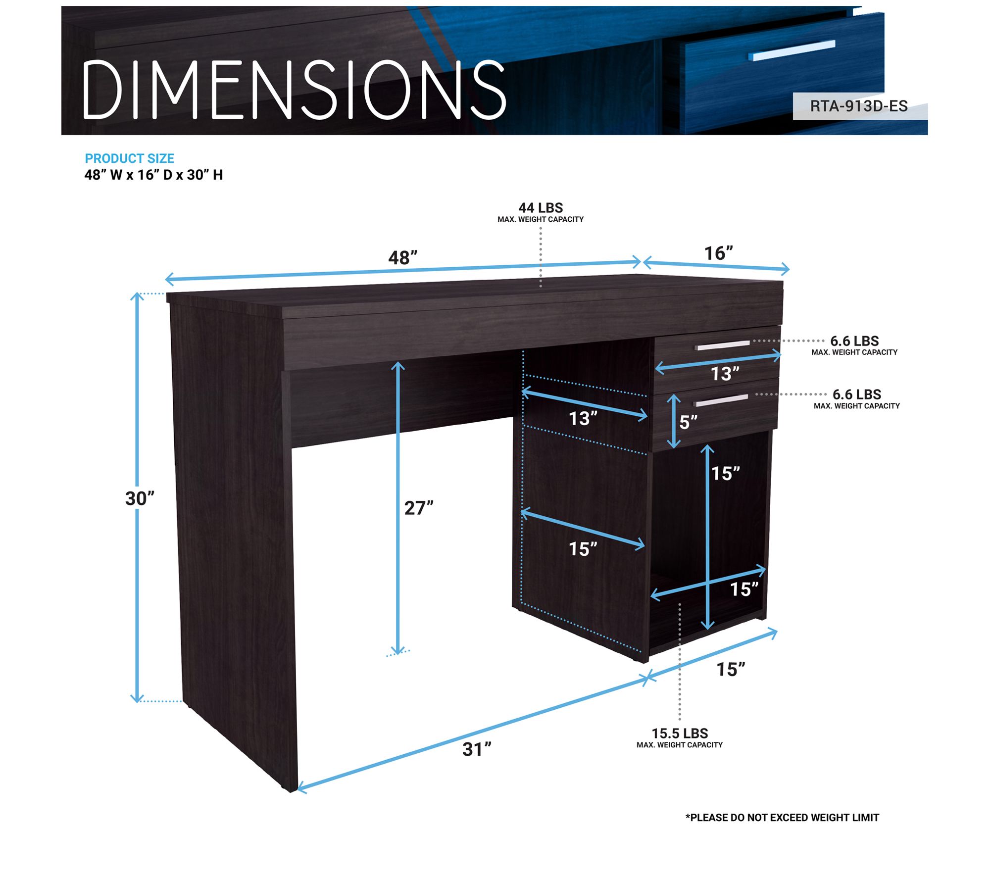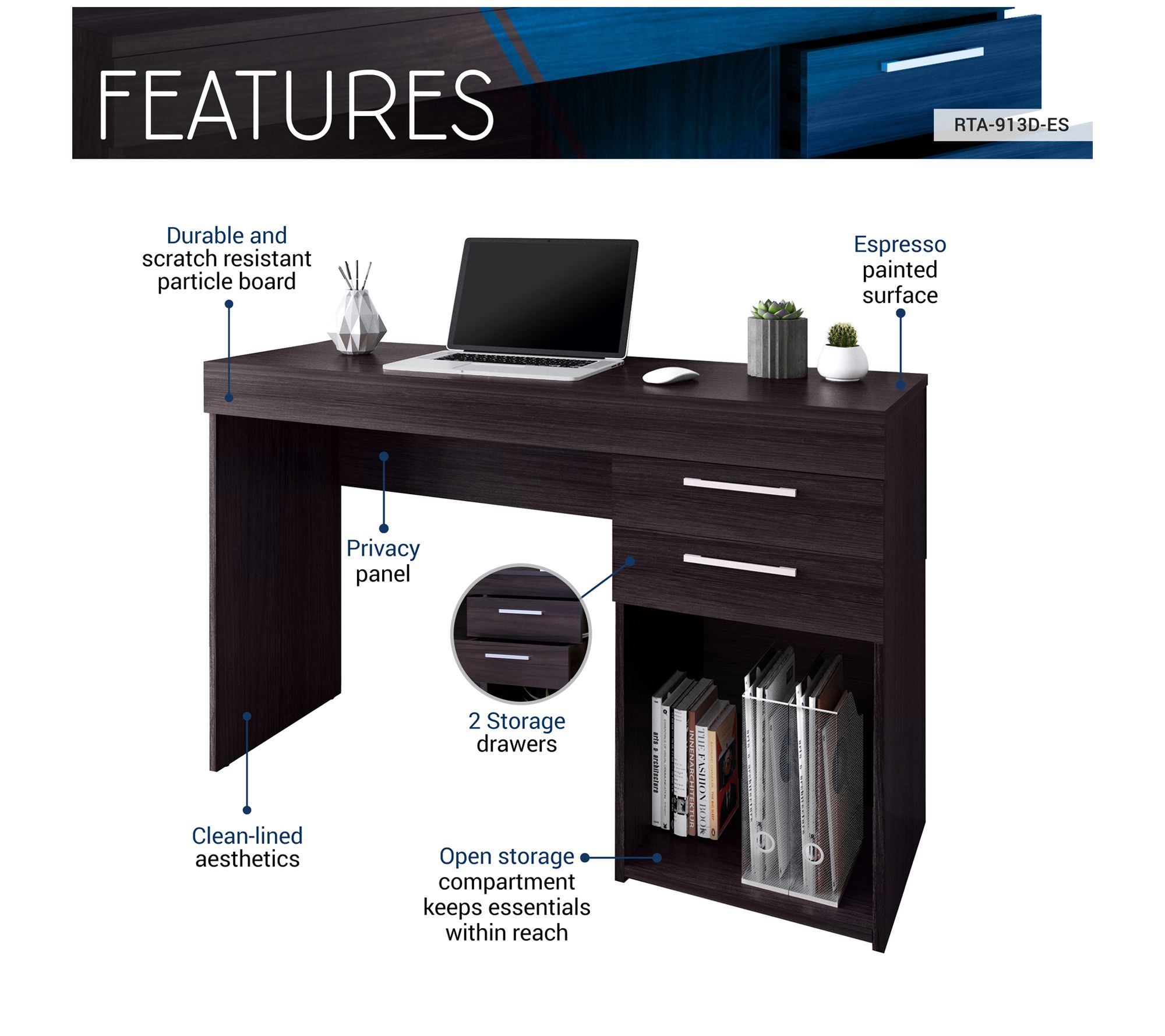 Techni Mobili Writing Desk W/2 Drawers And Shelf