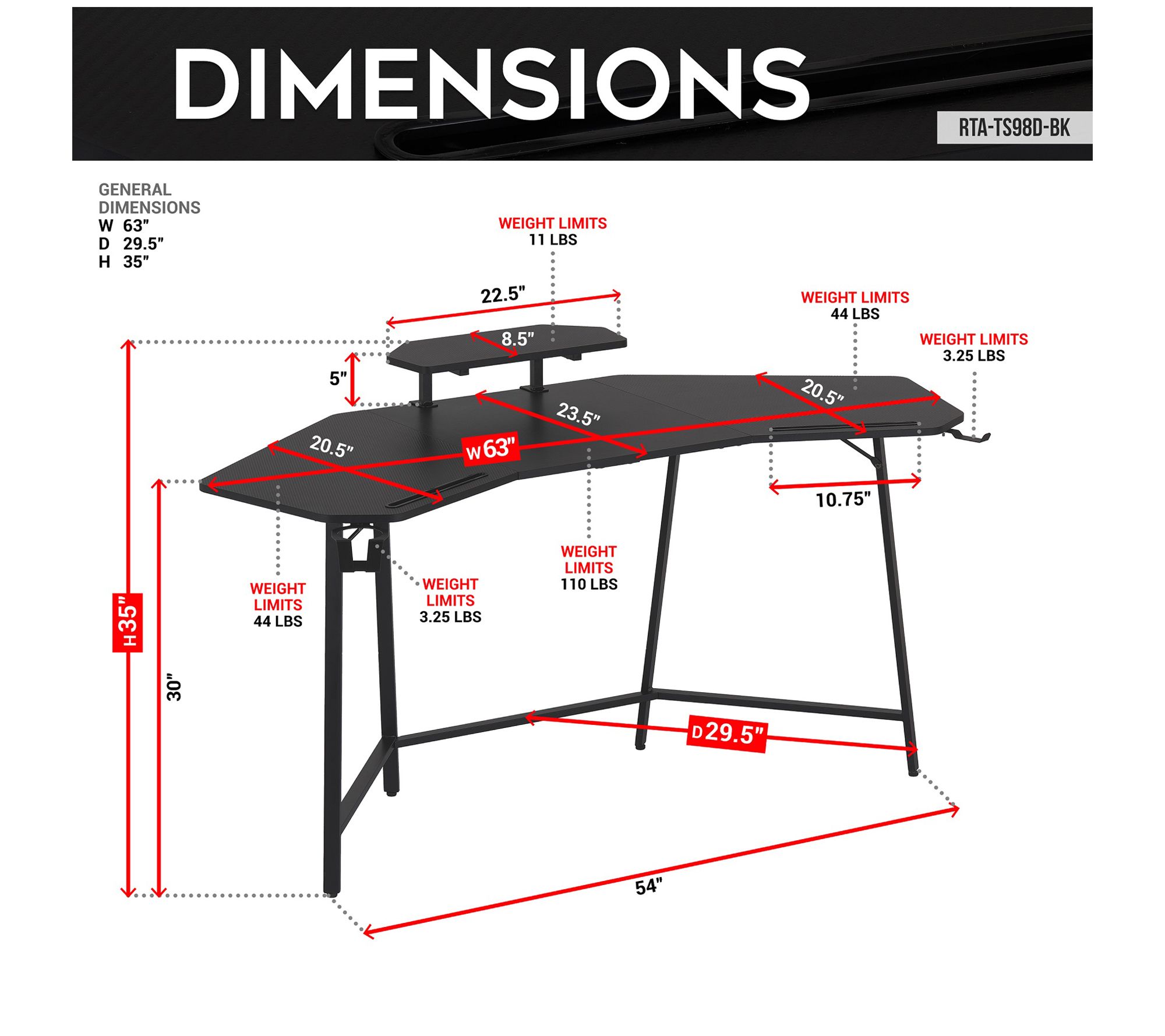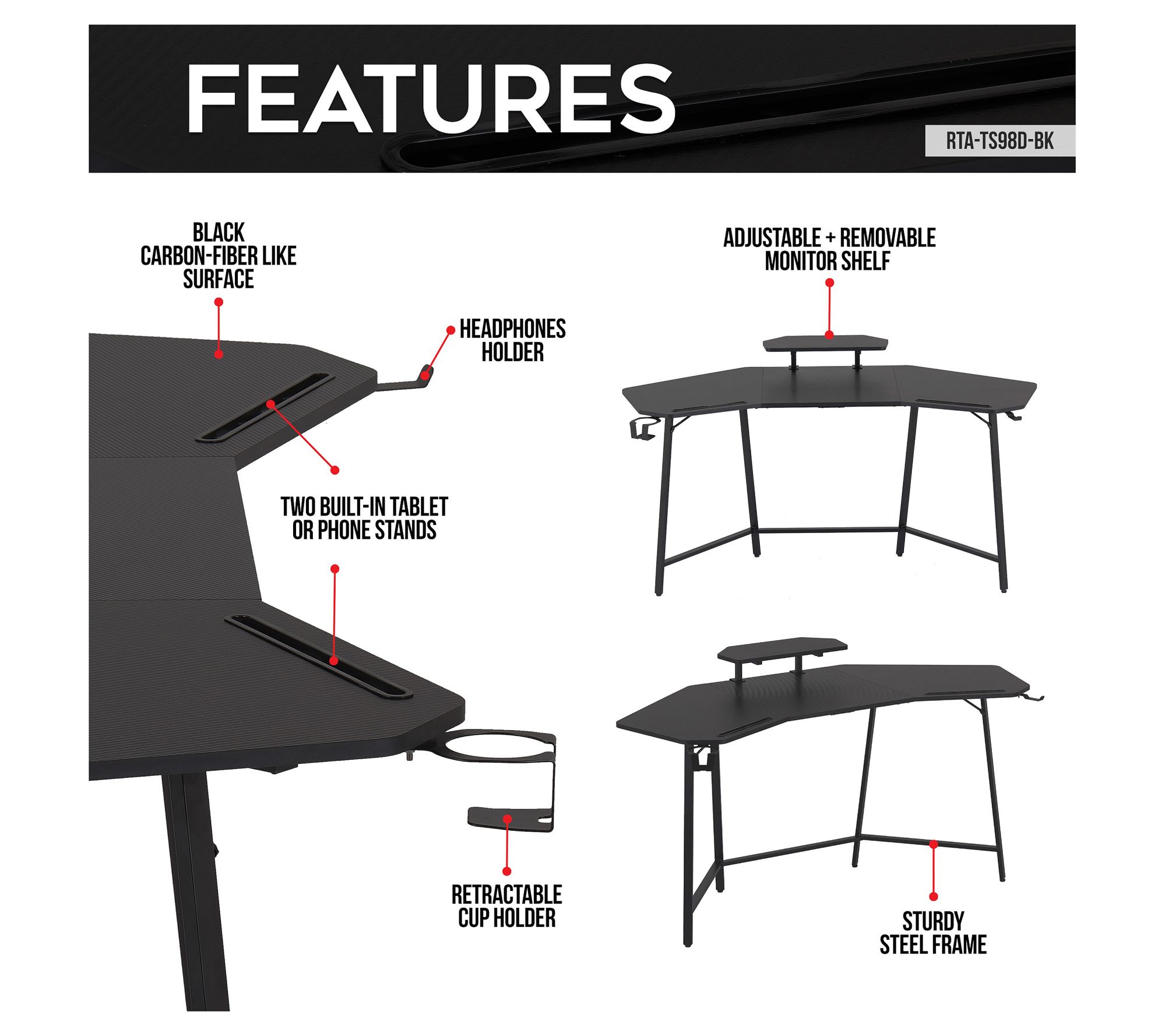 Techni Sport TS98D Gaming Desk w/ Shelf & Accessory Holders