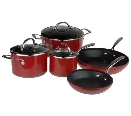 Essential in every kitchen. This eight-piece cookware set combines the superior heat conduction and durability of hard anodized cookware with the beauty of porcelain enamel exteriors. From Technique(R) Cookware.