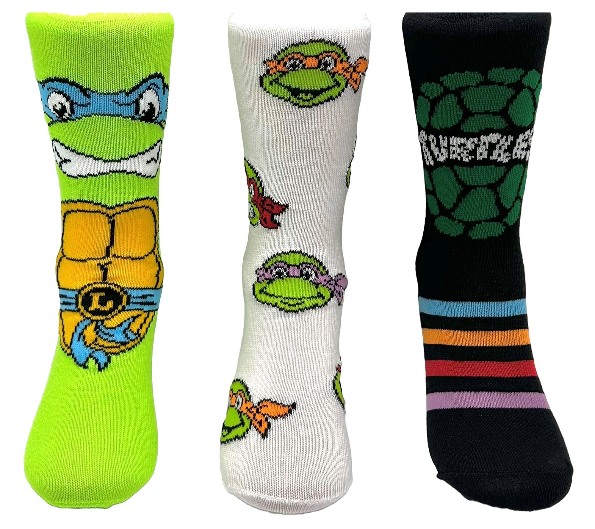 Dive into adventure with every step in the Teenage Mutant Ninja Turtles Boys Crew Socks Set. Featuring vibrant designs that celebrate the iconic characters, this 3-pair set brings the excitement of the sewers to your little one's wardrobe. Perfect for fans of the beloved series, these socks are a fun way to show off their turtle power! From Teenage Mutant Ninja Turtles.