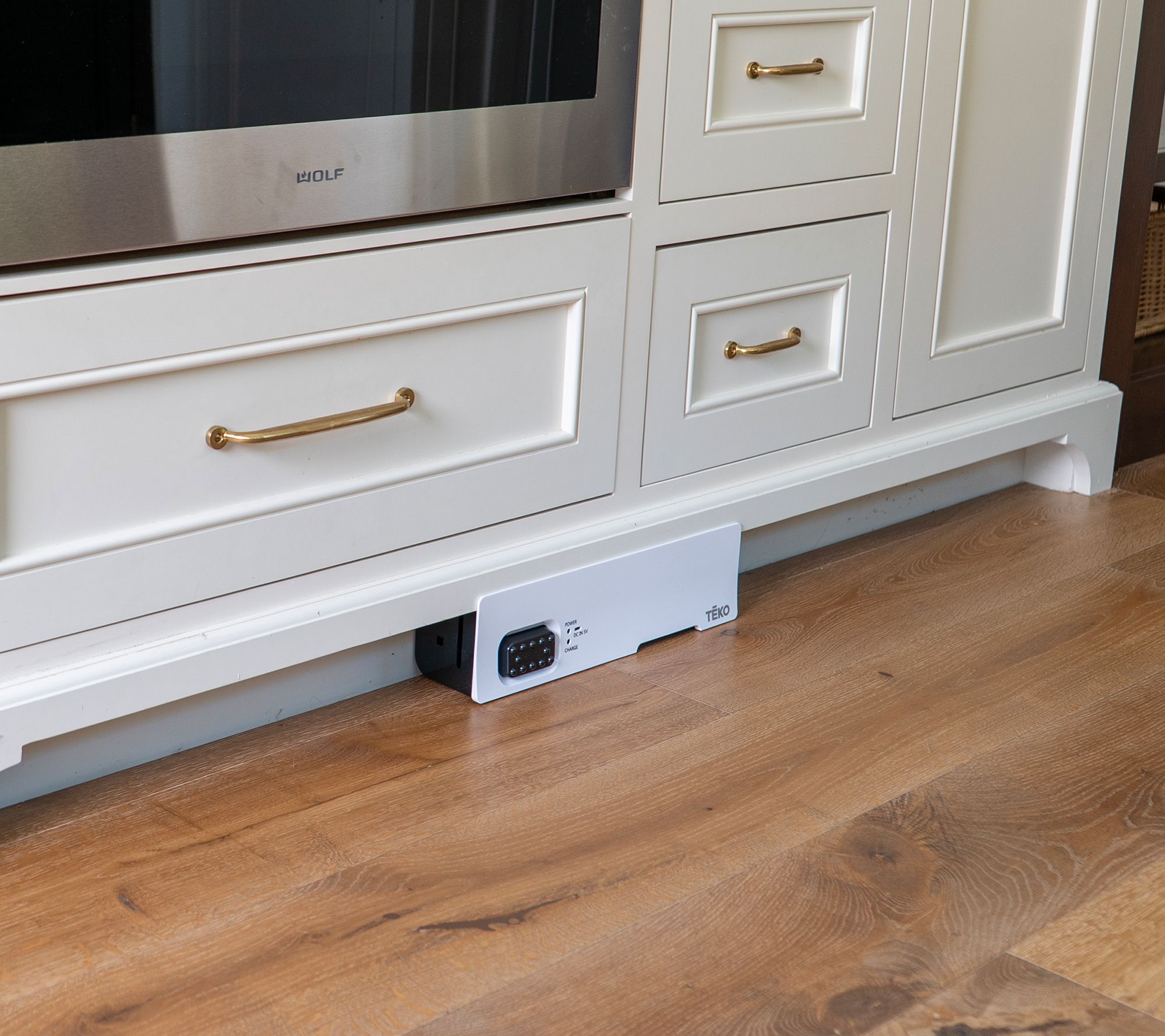 No bending required! Sweep up dust and crumbs and make cleanup a breeze with this under-counter toe kick vacuum. Simply brush debris towards the base and let discreet suction instantly tidy floors -- no dust pan needed. Keep entryways and kitchen workspaces neat with one-touch convenience. From Teko.