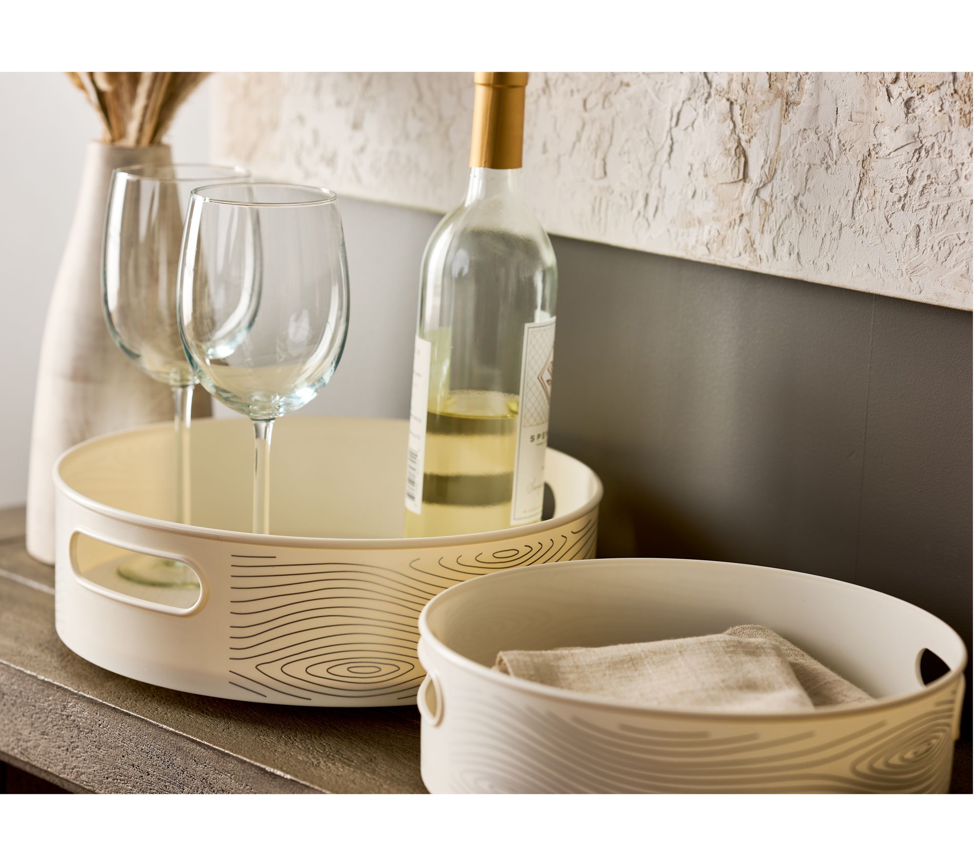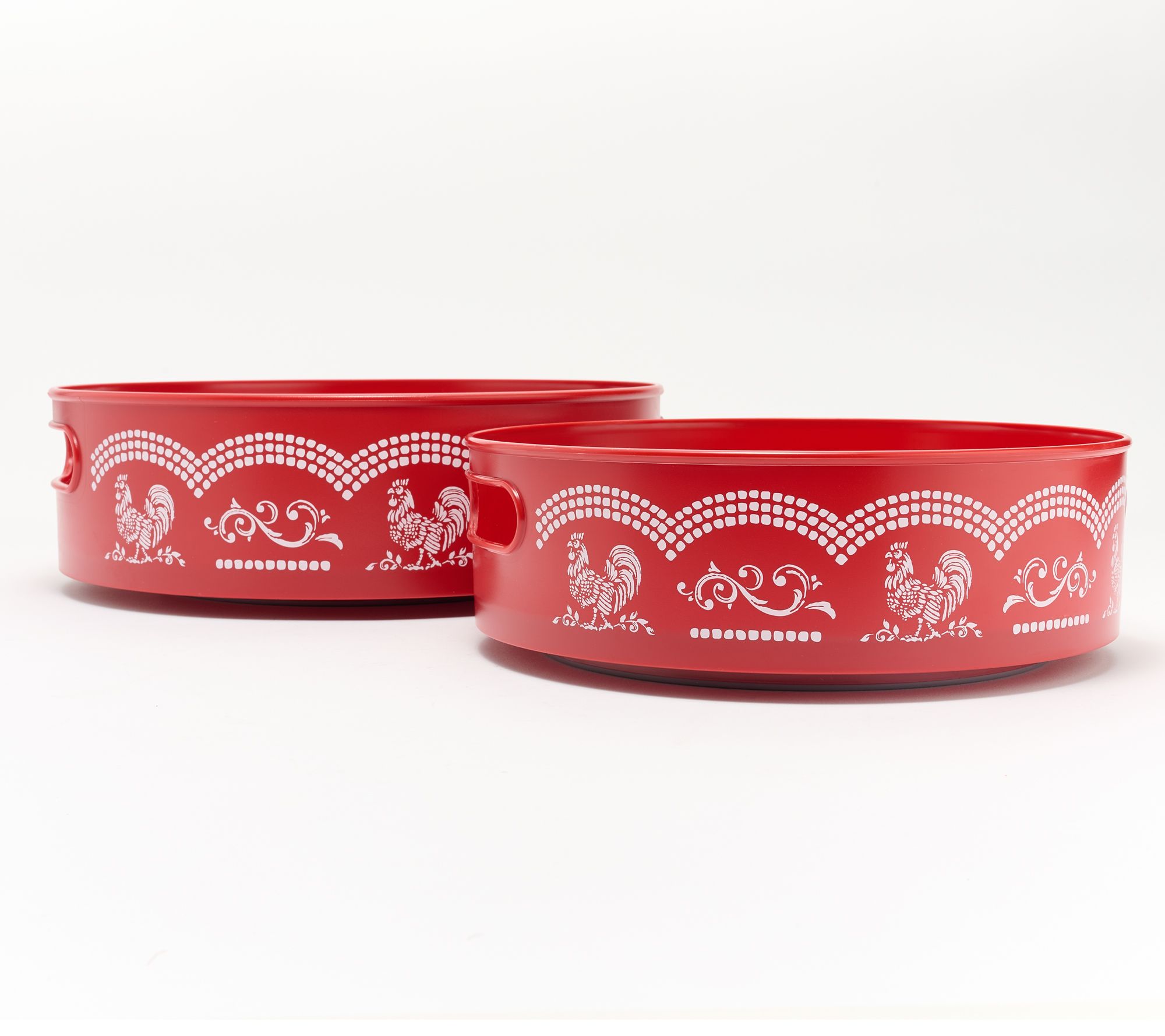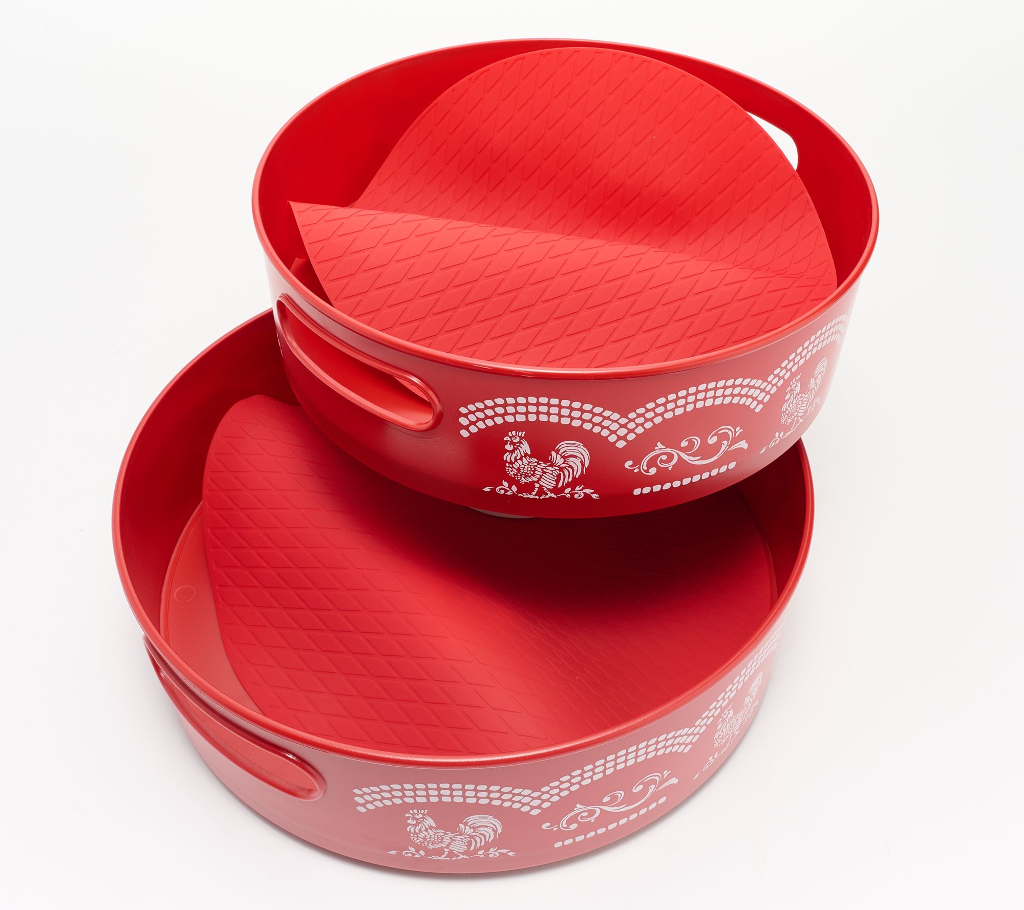 Organize any space in your home or garage with this set of turntables. Non-slip silicone mats help keep your items from falling and they are removable for easy cleaning. Place them in hard-to-reach areas or tight spaces like a kitchen cabinet or the corner of your linen closet. From Temp-tations® Ovenware.