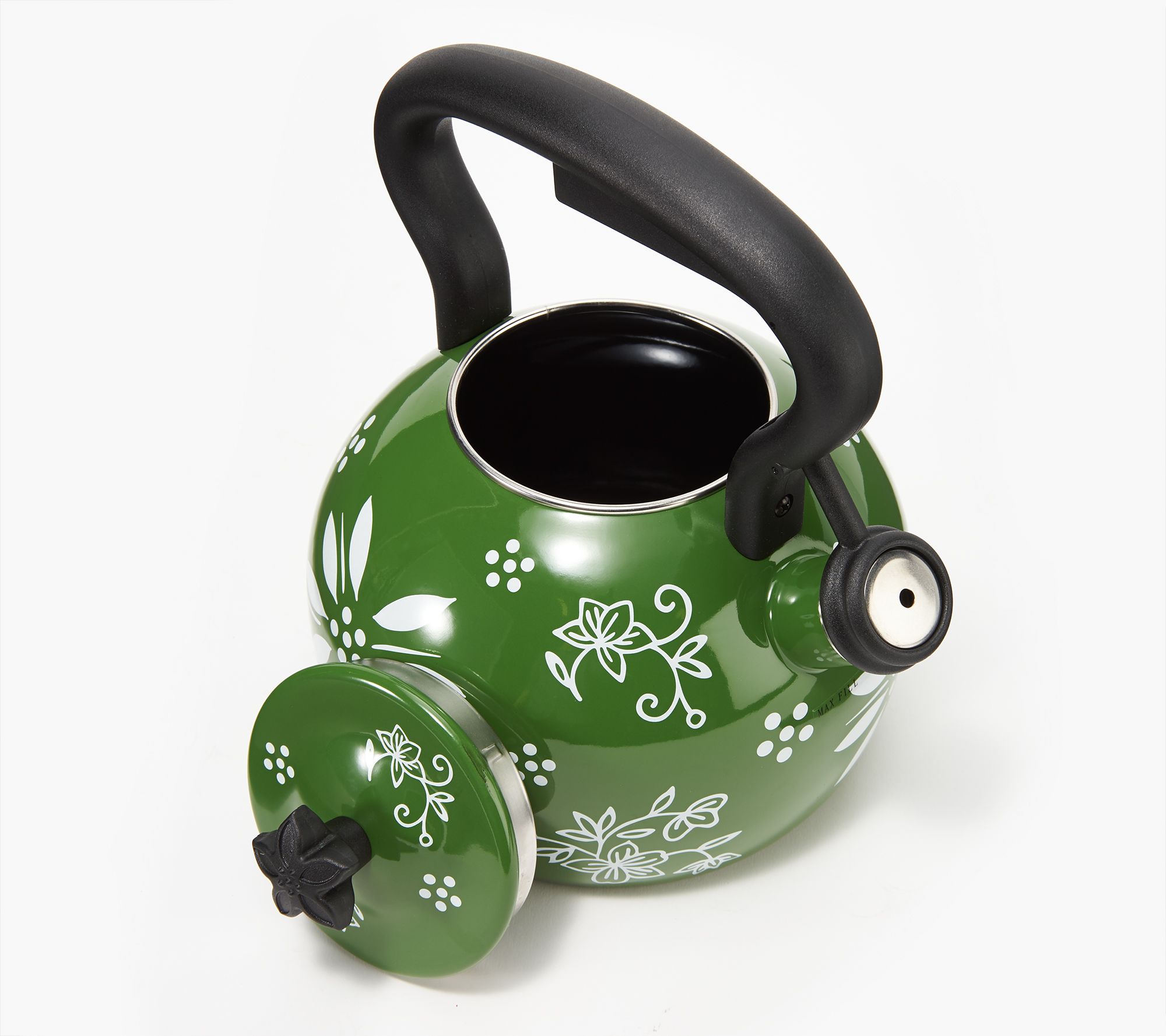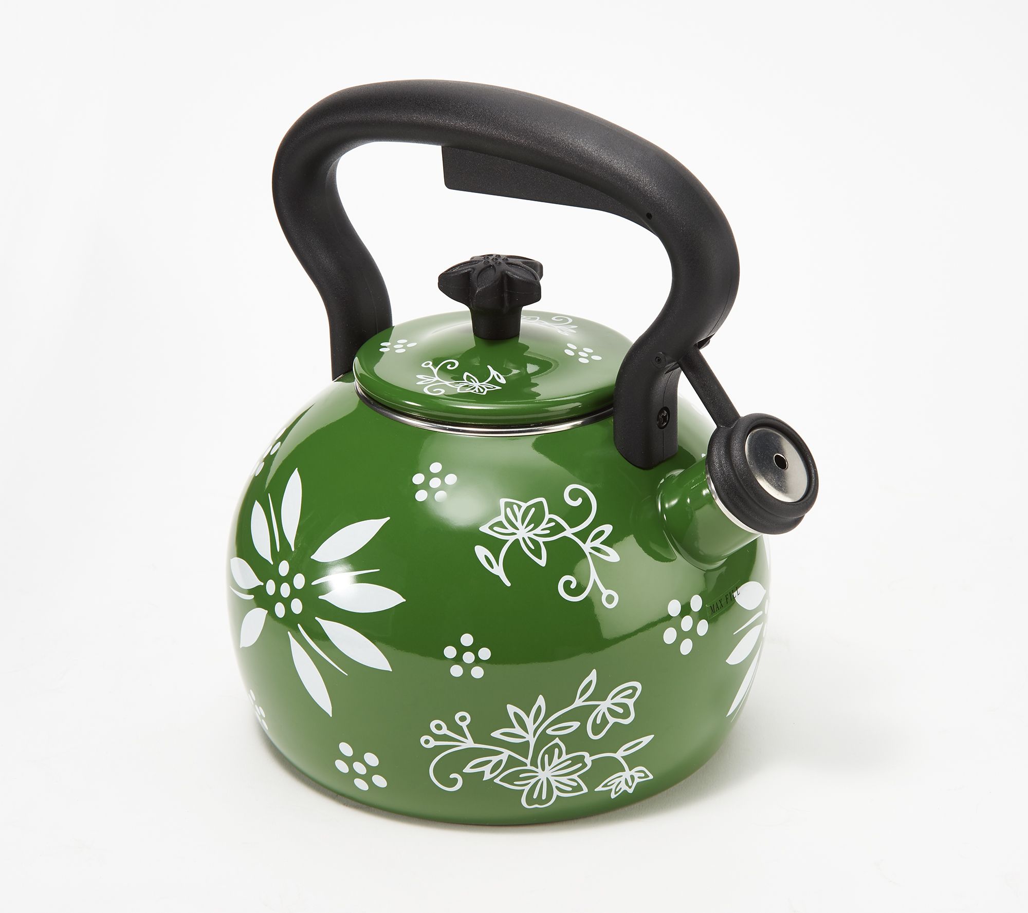 Sitting so pretty on your stovetop, this whistling kettle beckons you back to the kitchen when your water's hot and ready. From Temp-tations® Ovenware.