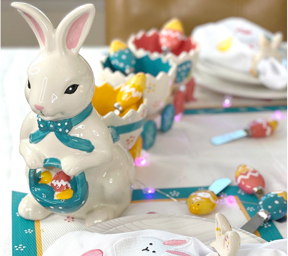 Give your tastiest dips, spreads, and snacks a first-class ticket aboard this adorable bunny train appetizer set, complete with egg-shaped spreaders to keep the festive feel on track. From Temp-tations®.