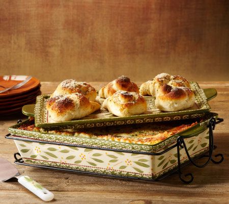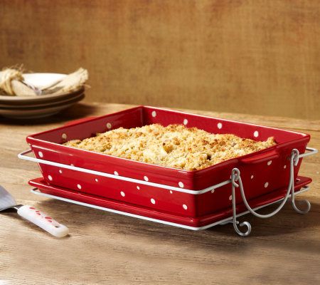 Includes 4-qt ceramic baker with Lid-it, wire rack, lasagna server, storage lid, and six recipe cards