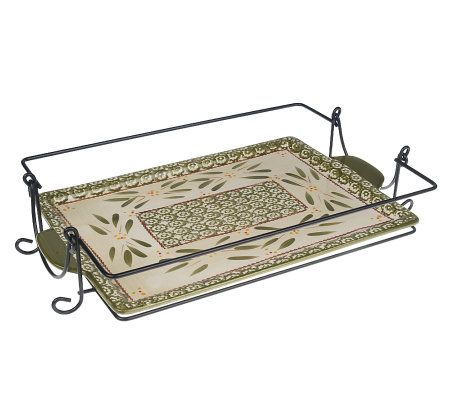 Approximate measurements: Baker 13-3/4"L x 9-3/4"W x 2-3/4"H; Trivet 15"L x 10"W; Wire rack 16"L x 10"W x 3"H; Server 11-1/4"L x 2-3/4"W