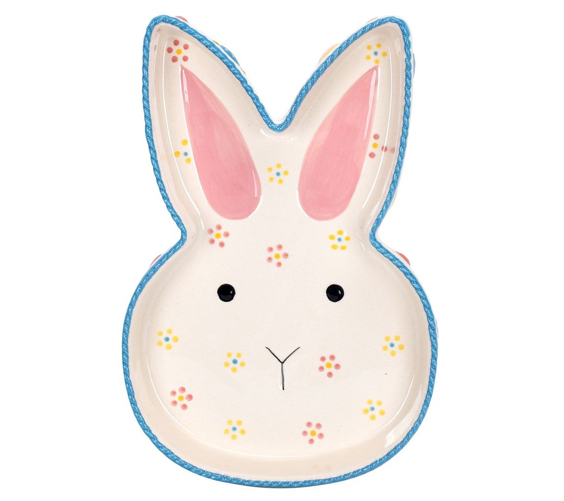 Bring whimsy and versatility to your baking with the this bunny pan. Perfect for crafting adorable bunny-shaped cakes, this pan also doubles as a charming serving platter for springtime treats and appetizers or as a baker for roasts and casseroles. Featuring painted and sculptural details, this ceramic stoneware piece is a delightful addition to any springtime celebration. From Temp-tations®.