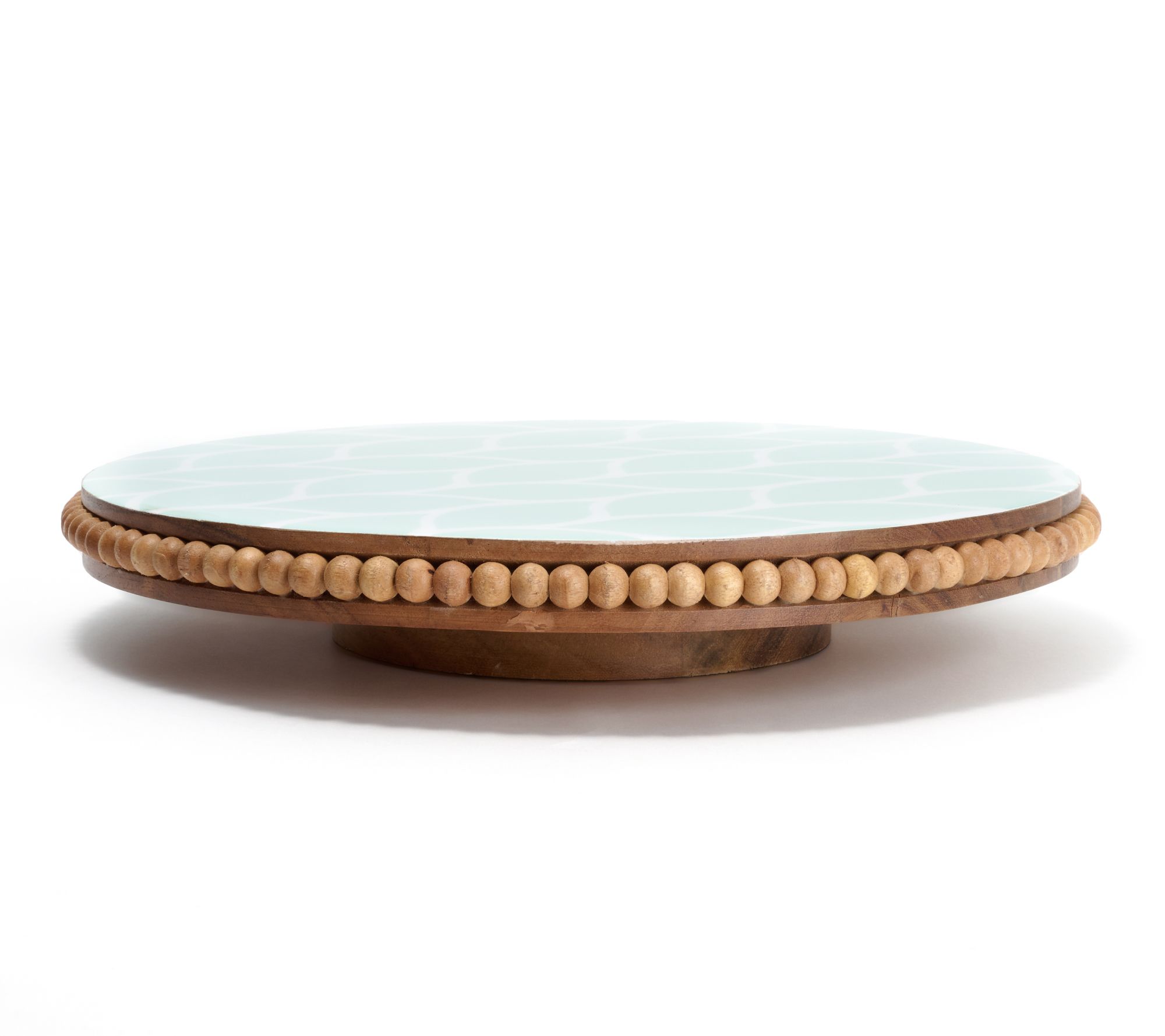 Temp-tations Carved Willow Beaded Acacia Lazy Susan w/ Decal Print