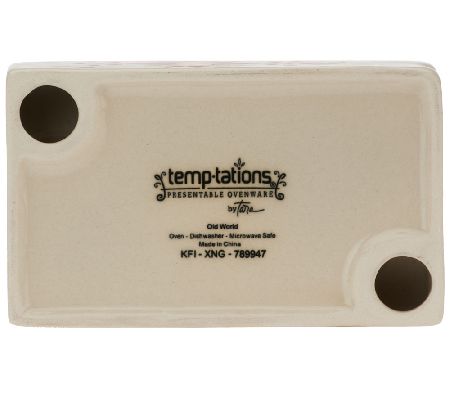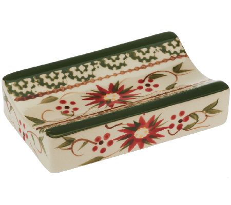 Roll out the holiday fun with this festive rolling pin from Temp-tations. The beautiful ceramic piece is handpainted with bold colors and jolly accents--and sits atop an equally festive stand. From Temp-tations(R) Ovenware.