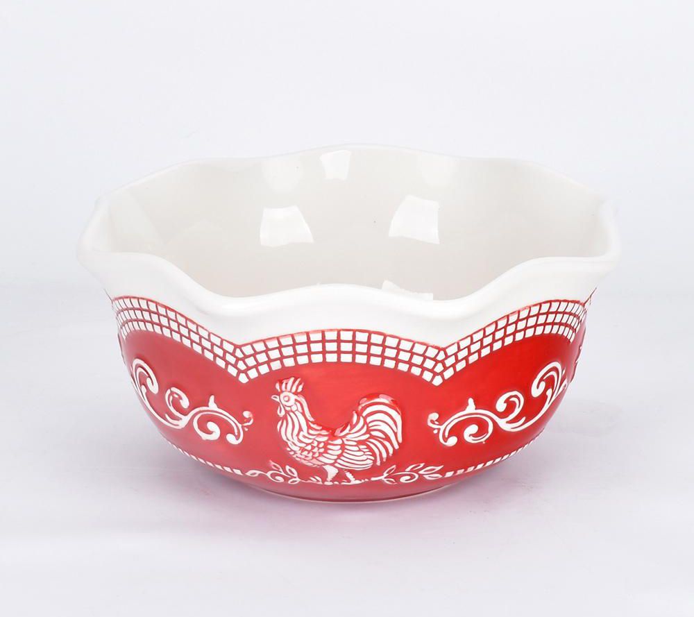 Liven up your dinner table with the modern farmhouse design on this ceramic serving bowl. Prep, mix, microwave, bake, and store, all in one spacious vessel. From Temp-tations® Ovenware.