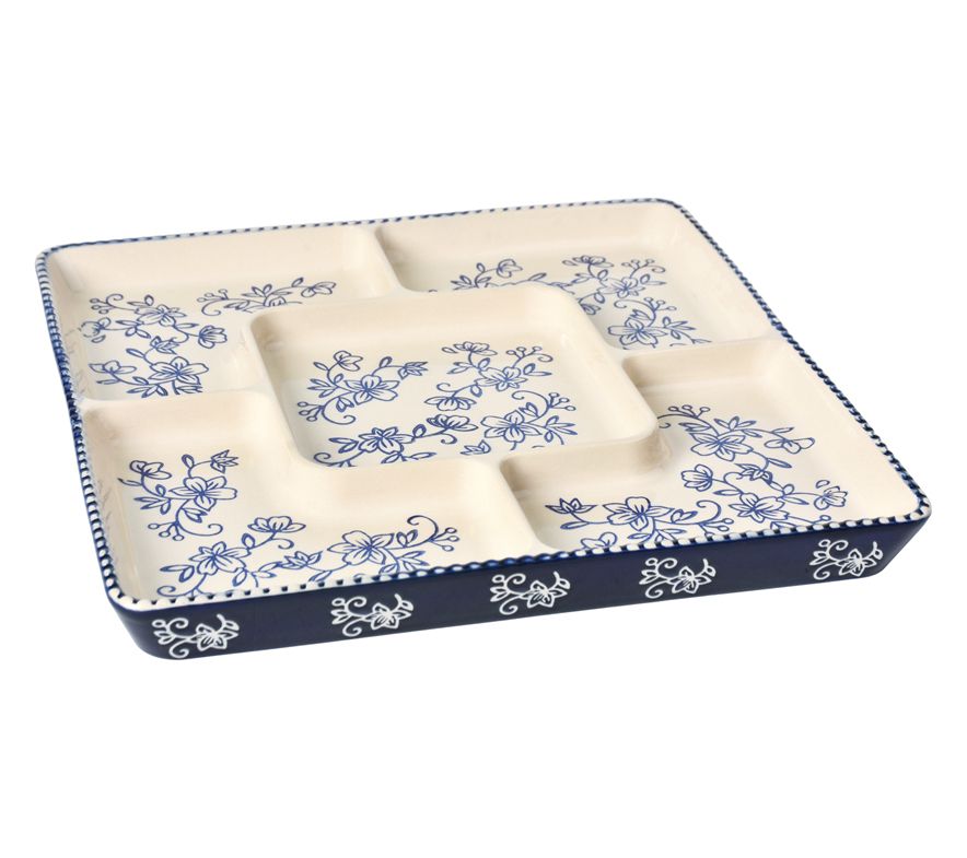 Family divided on what to serve? With this ceramic server, everyone gets their wish. Five sections allow you plate up a plethora of palate-pleasing snacks, sauces, dips, and toppings. Problem solved! From Temp-tations® Ovenware.