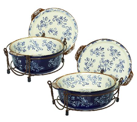 Enjoy colorful versatility in your kitchen with help from Temp-tations(R) designer Tara McConnell. She redesigned a popular Temp-tations set to bring you this functional, beautiful 13-piece collection, now with round bakers by customer request. Handpainted in the pretty Floral Lace pattern, it's the set you'll turn to time and time again, whether you're whipping up a weeknight meal or planning a big holiday dinner.