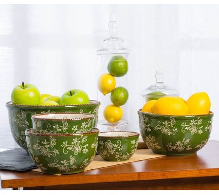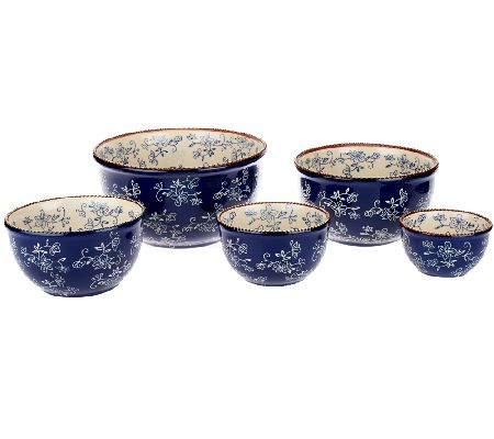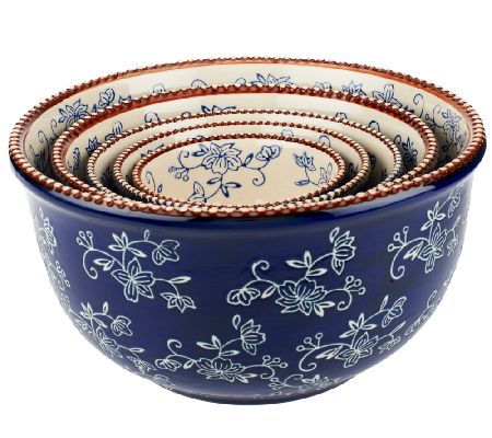 Pretty and practical. Handpainted in a lovely Floral Lace pattern, these mixing bowls are great for prep work--but they're too pretty to leave it at just that. Use these durable ceramic pieces to cook, serve, and store your favorite dishes. From Temp-tations(R) Ovenware.