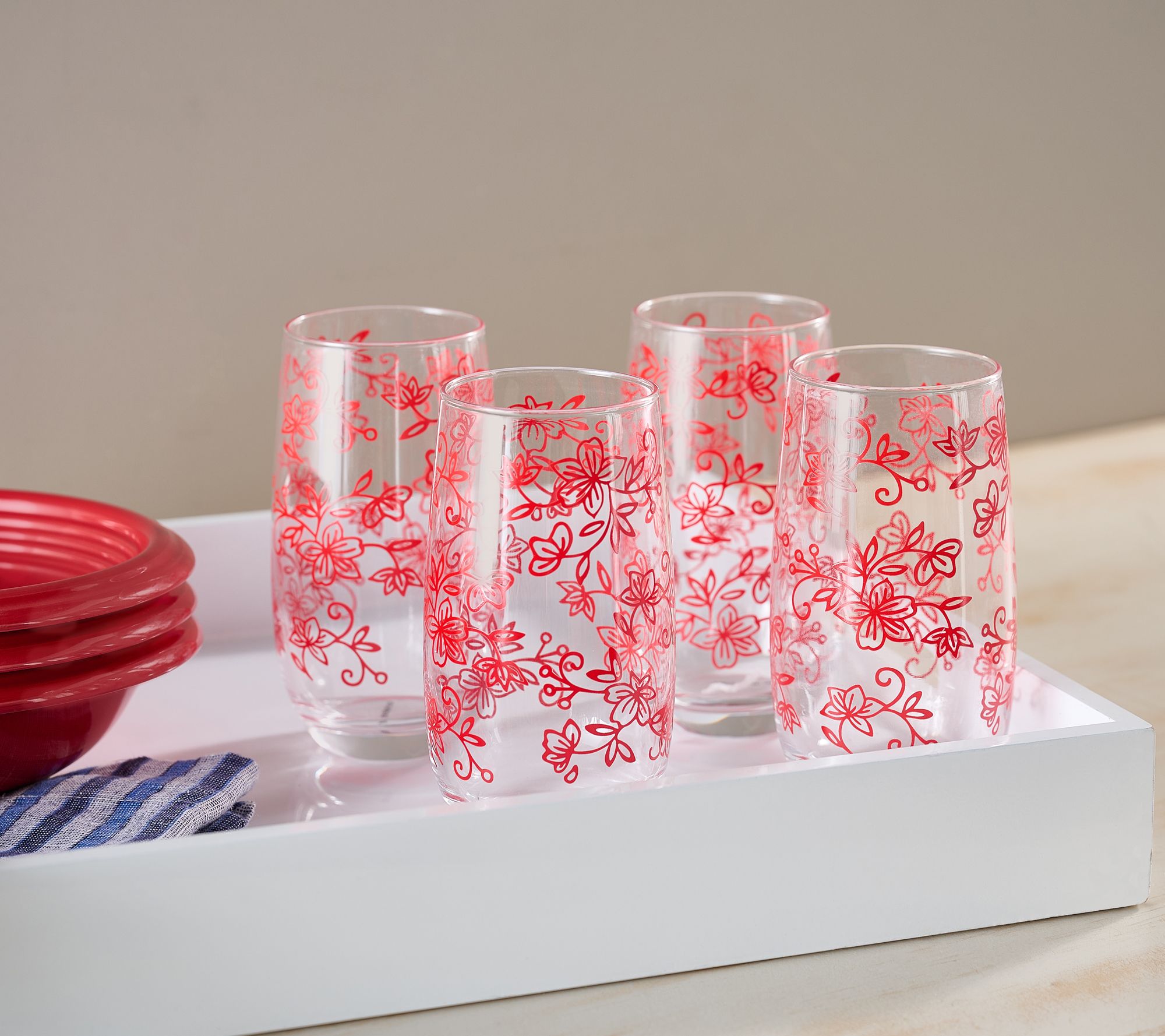 Temp-tations Floral Lace Set of (4) 16-oz Glasses