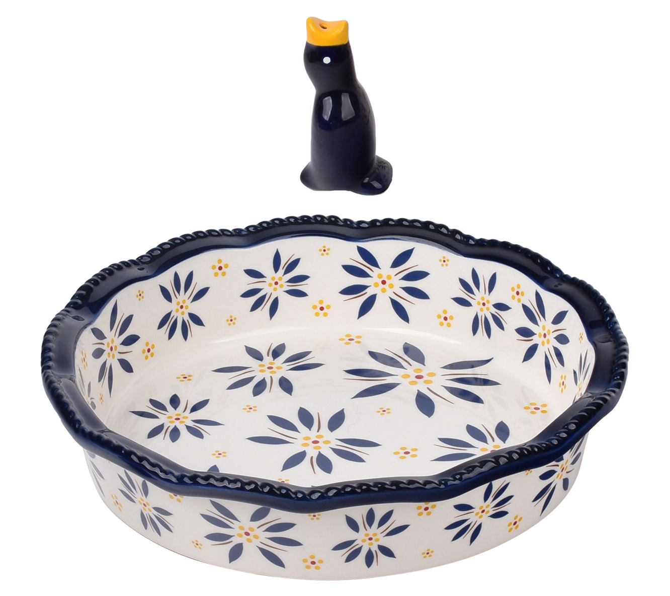 You've spent hours perfecting the recipe that's been passed down for generations. Now serve up a little slice of heaven in this nostalgic pie plate. The figural pie bird will prevent your precious pies from bubbling over. From Temp-tations® Ovenware.