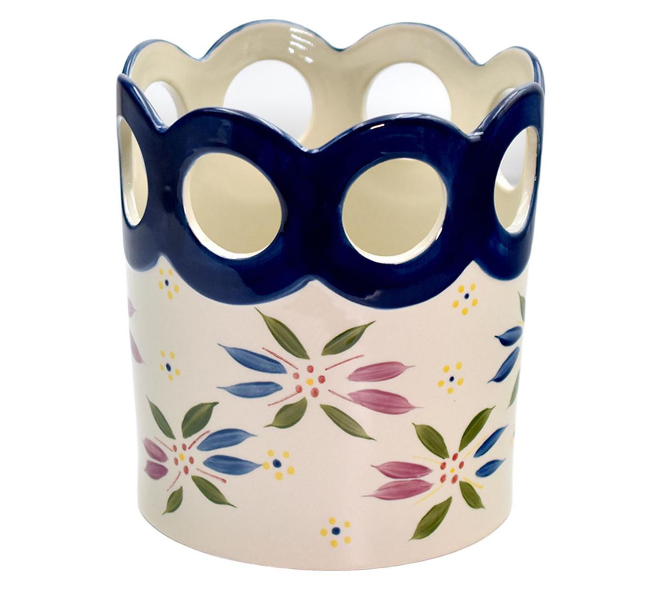 Spruce up your kitchen decor with this charming Old World countertop storage crock. Its ceramic design features bold accents and beautiful colors, creating an elegant yet practical addition to your space. Perfect for storing utensils or other kitchen essentials, it brings both style and organization to your countertops. From Temp-tations® Ovenware.
