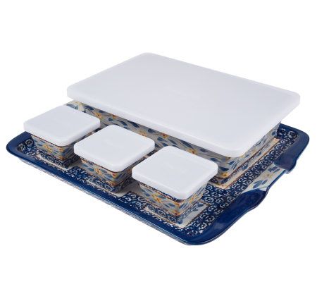 Veggies and dips, chips and salsas, bread and butters--this serving set is an easy and beautiful way to present your favorites at your next gathering. Each piece is vibrantly handpainted in an old world-style pattern that's sure to garner rave reviews. Best of all, the set's ceramic design lets you prep, cook, store, and serve all in the same dish. From Temp-tations(R) Ovenware.