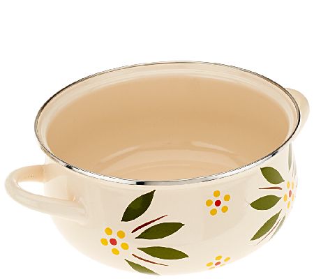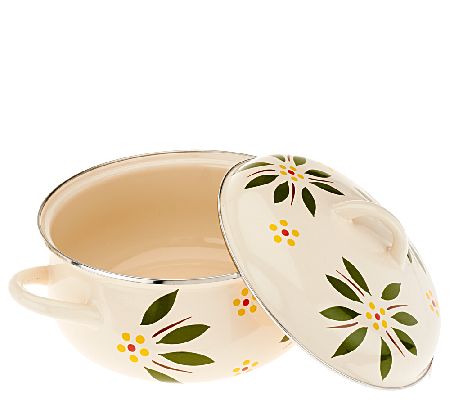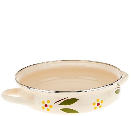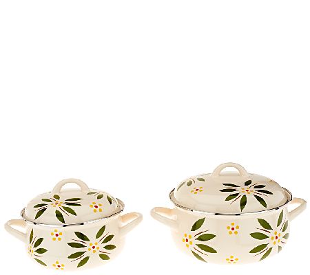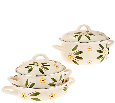Compliments to the chef--and the cookware! This Temp-tations five-piece cookware set brings beauty and strength to the table thanks to enamel-on-steel construction and a beloved Old World design. One serving pan, two pots, and two lids take on meals for a crowd or just a couple. From Temp-tations(R) Ovenware.