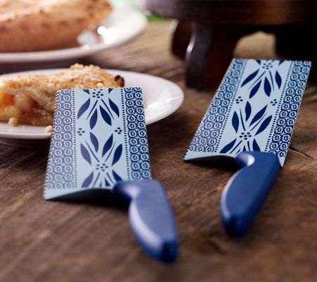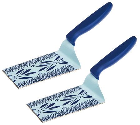 You'll flip for these stylish spatulas. Designed with a colorful nonstick coating, the slice and serve spatula brings a little beauty to your everyday entertaining. A sheath protects the blade when it's stored in your drawer, or when you're taking it to a potluck with your favorite covered dish. From Temp-tations(R) Ovenware and Kuhn Rikon.