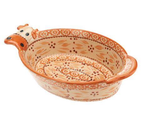 Get mealtime moo-ving! Take every dish from the farm to the oven to the freezer with these cow-shaped nesting bakers. Handpainted with an Old World pattern, they offer up heaping helpings of style and fun. From Temp-tations(R) Ovenware.