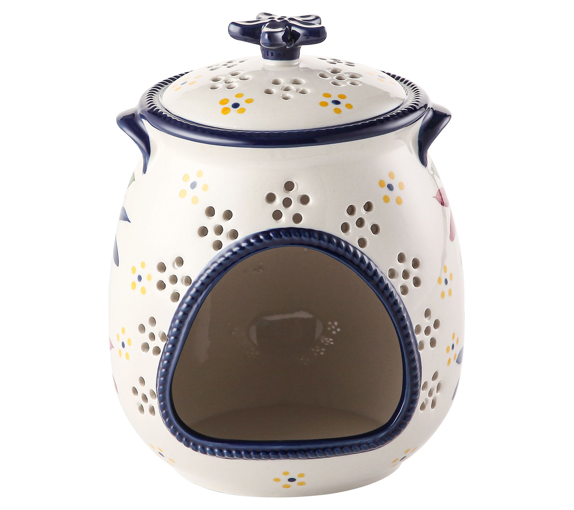 Whether you're going on a countertop crusade to clear the clutter or looking for a stylish place to stash soap or sponges, this versatile holder adds dazzle (check out that bold design!) and organization to your kitchen decor and so much more. From Temp-tations® Ovenware.