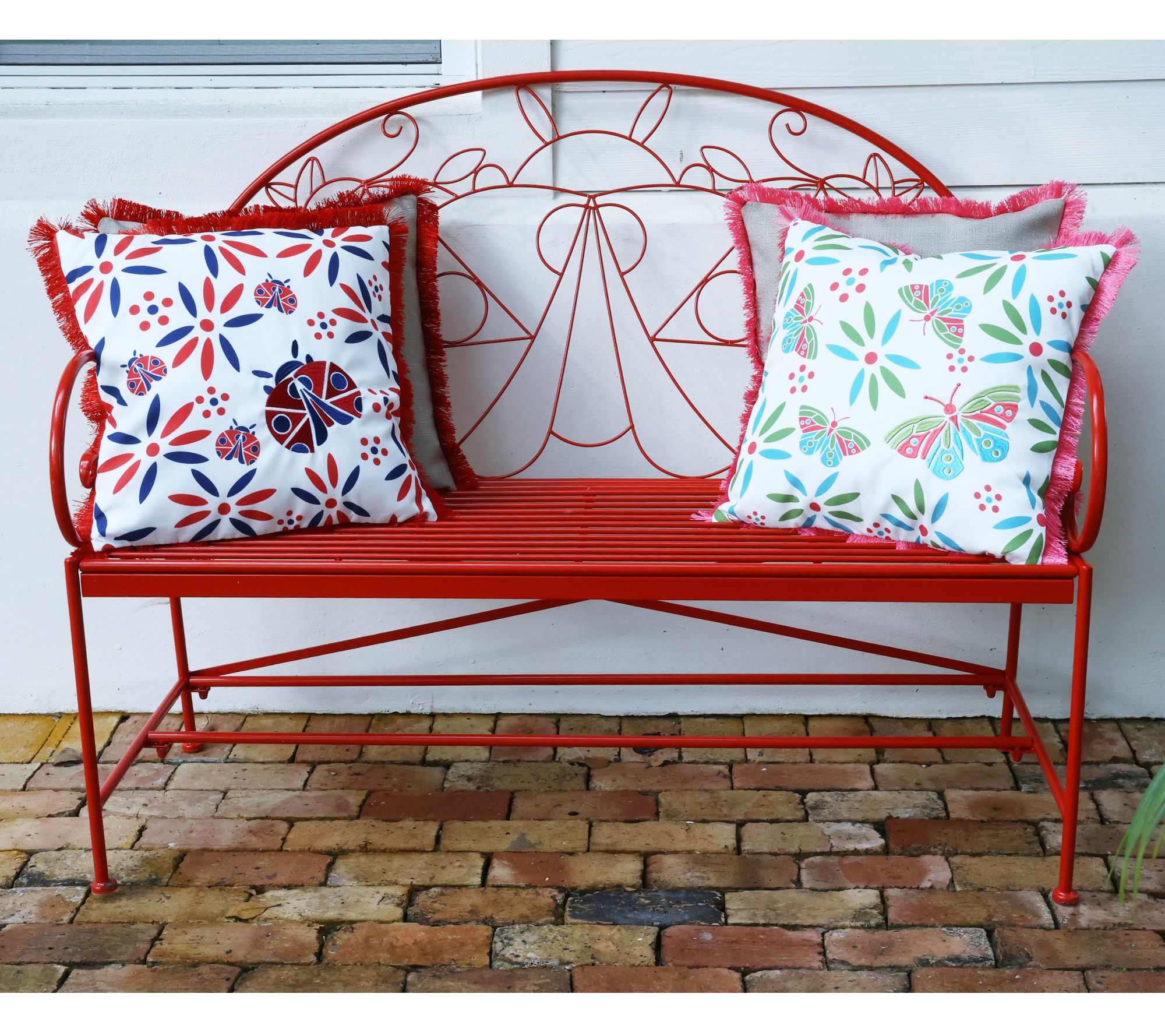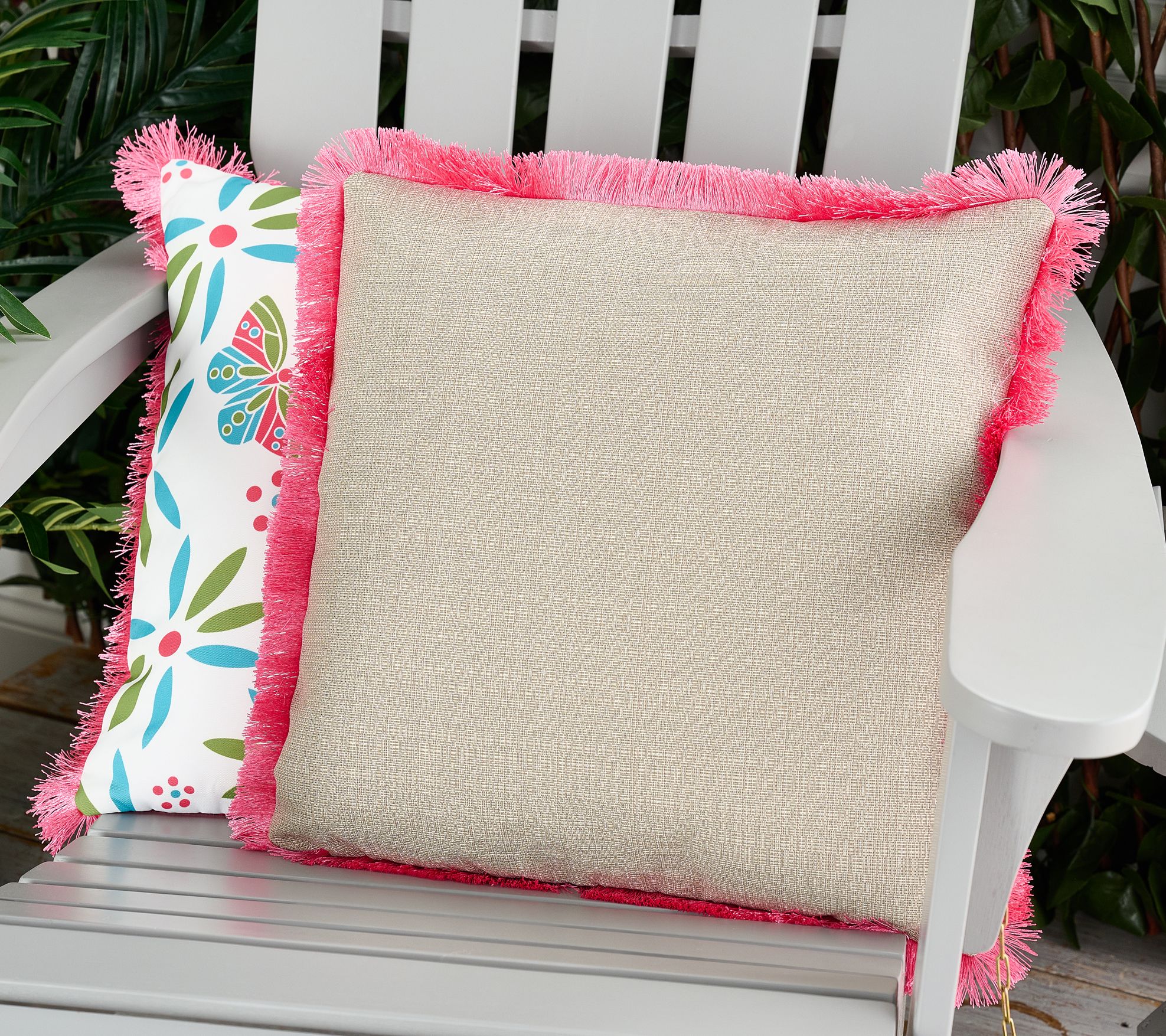 Create a soft place to enjoy your outdoor space with this set of two pillows. Each one features a fringed design and colorful summertime critters, adding comfort and cutenessto your porch or deck furniture. From Temp-tations®.