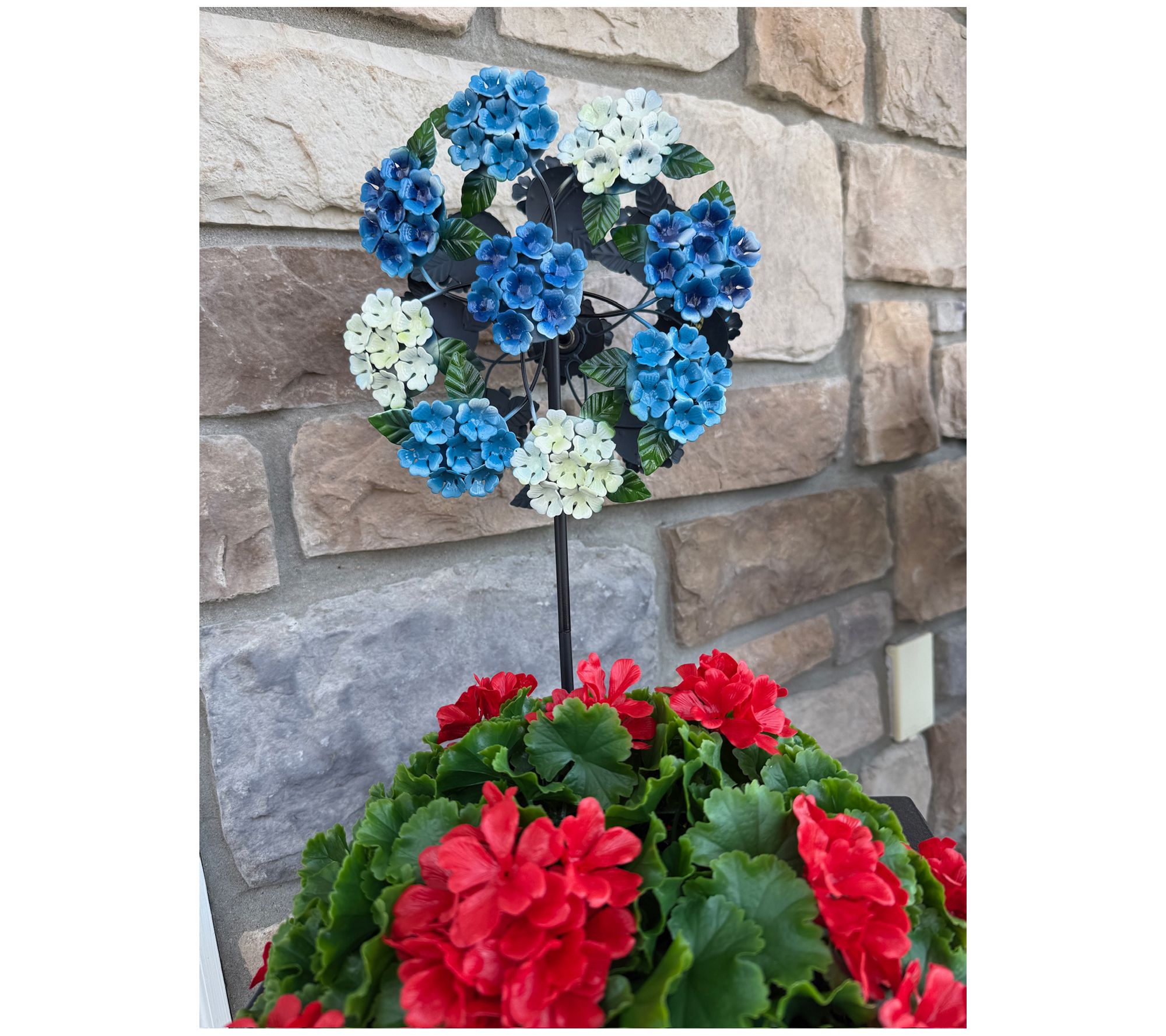 • Approximate measurements: Spinner 9.73" x 6.75" x 28.75"; Hydrangea weighs 3.3 lbs; Frog 2.46 lbs; Sunflower 2.02 lbs; Multi Critter/Butterfly/Hummingbird 1.89 lbs; Patriotic 1.67 lbs