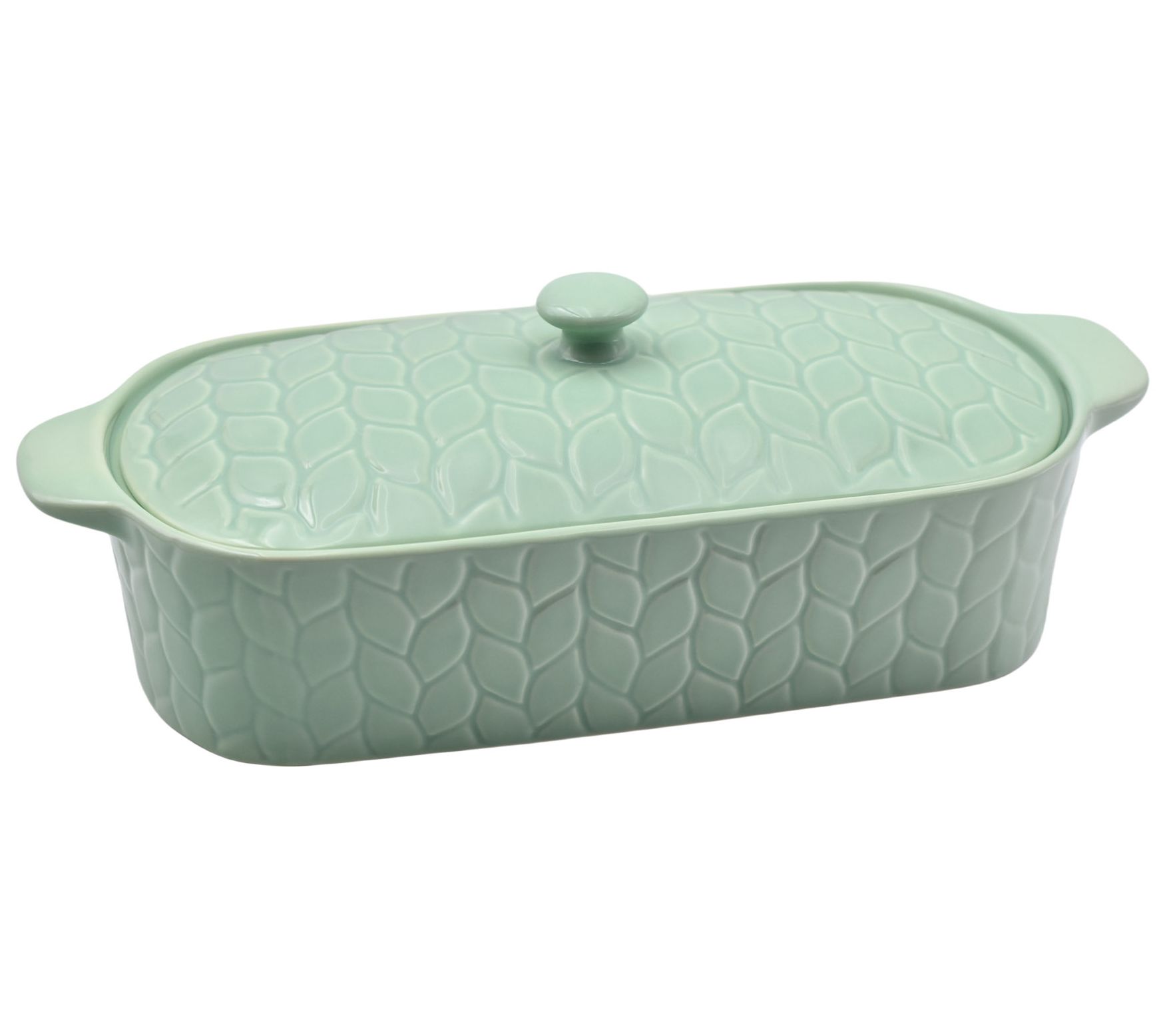 Bringing a touch of artistry to your kitchen, this embossed squoval baker is just the right vessel for baking bread, meatloaf, casseroles, and more. The domed lid adds elegance and allows for air circulation and self-basting, making it a versatile addition to your cookware. From Temp-tations® Ovenware.