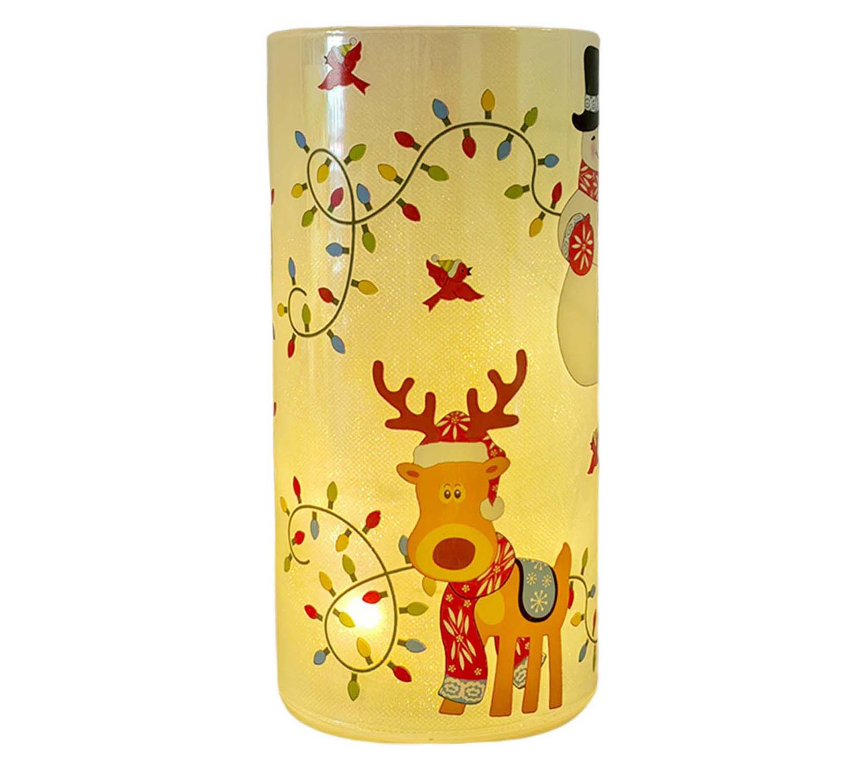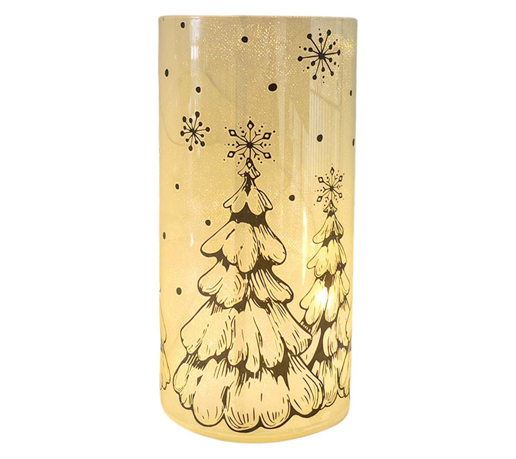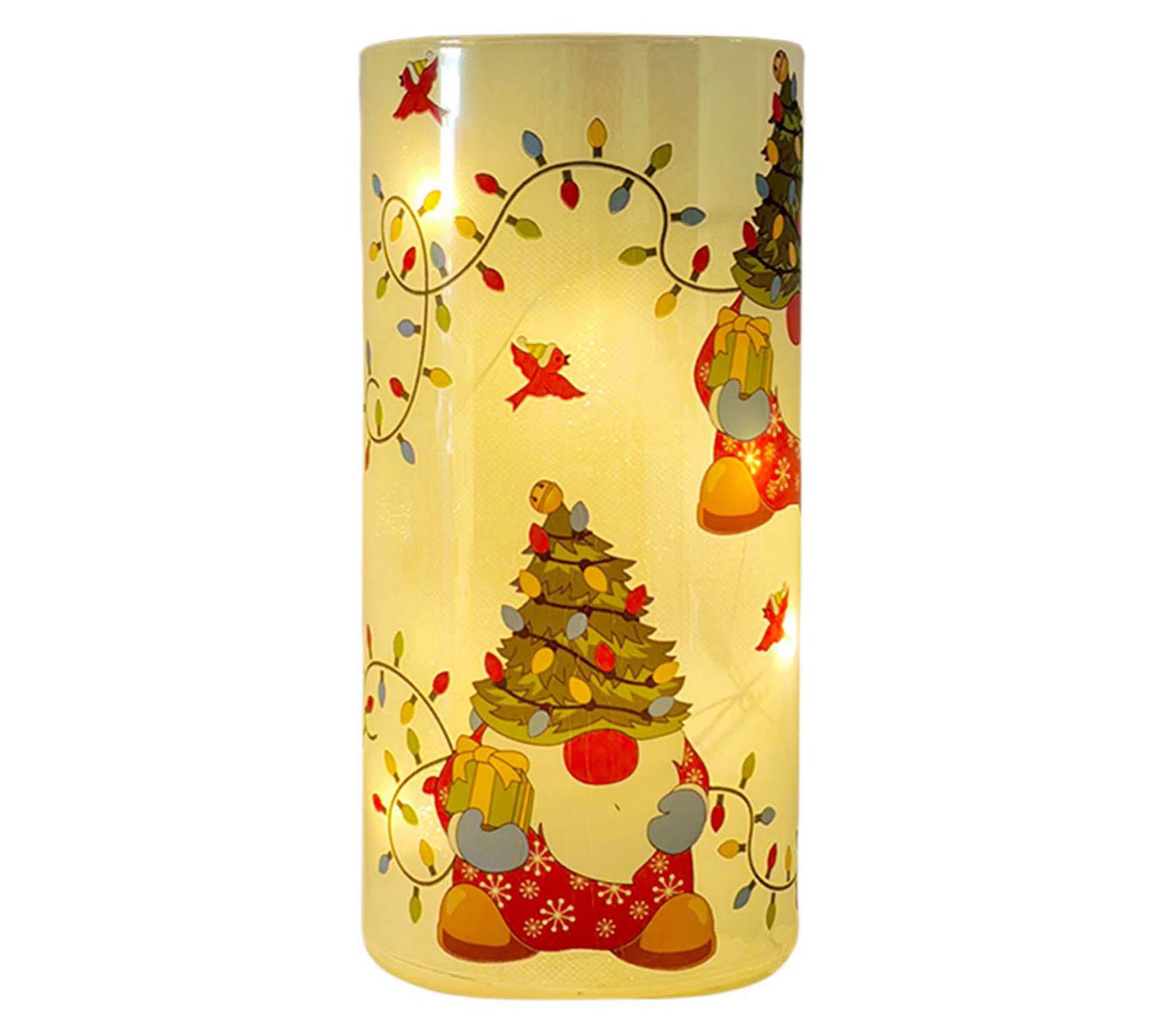 Holiday evenings feel extra special when your sideboard or window sill sparkles with this hurricane, glowing gently with fairy lights nestled inside. Choose a seasonal pattern that reflects your spirit -- playful gnomes, cheerful winter scenes, or classic birchwood -- and create a magical moment for guests and loved ones alike. Each time you turn it on, memories shine a little brighter. From Temp-tations®.