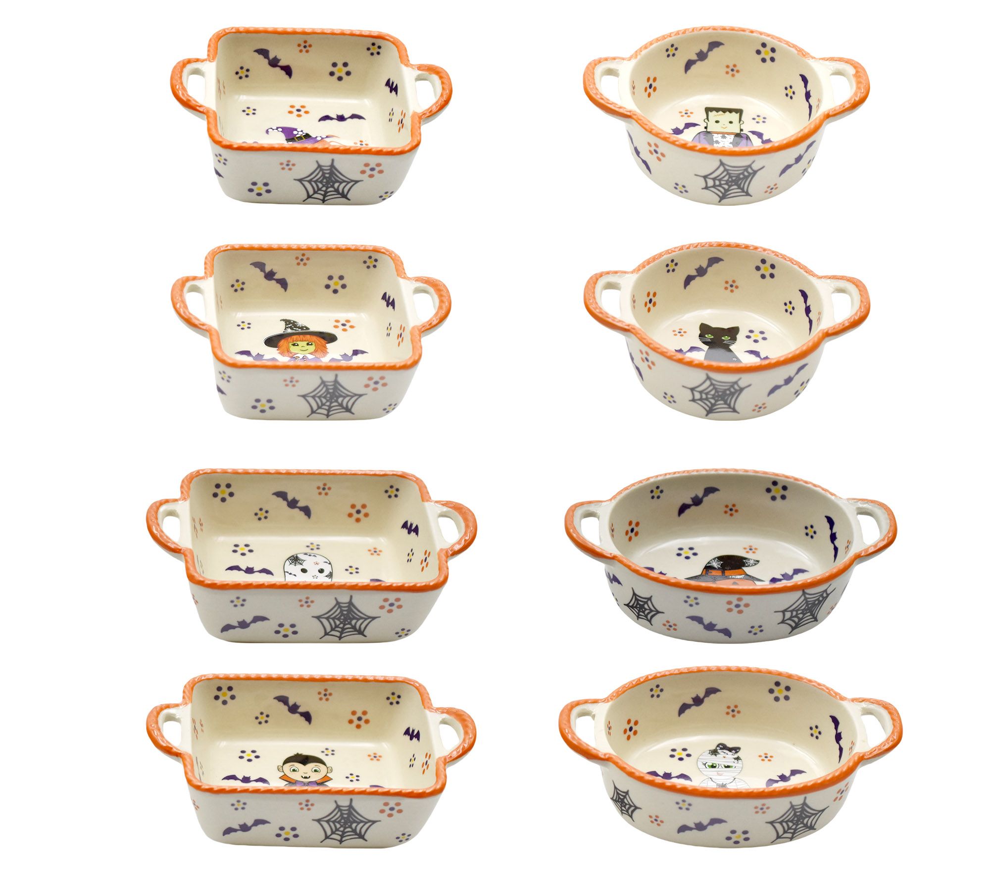 Includes two round ceramic bowls, two square ceramic bowls, two rectangular ceramic bowls, and two oval ceramic bowls