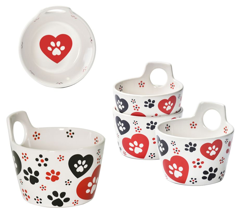 Dish up sweet treats with these darling ramekins boasting a fun paw print and heart motif. From Temp-tations.