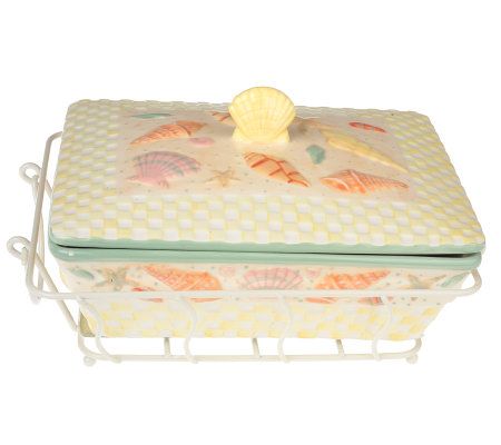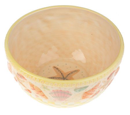 Serve up a beautiful summertime spread with this vibrant set. The covered baker and large serving bowl are decorated with handpainted shells to create the beach-inspired design. The unique design of these pieces lets you prep, cook, serve, and store--all in the same dish. From Temp-tations(R) Presentable Ovenware.