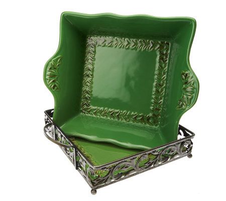 Buon appetito! Bring the feel of northern Italy to your kitchen with this 11-piece set. Complete with ceramic trivets, wire holders, and storage covers, these bakers and mixing bowls are designed to go from oven to table, impressing guests and leaving less mess. From Temp-tations(R) Ovenware.