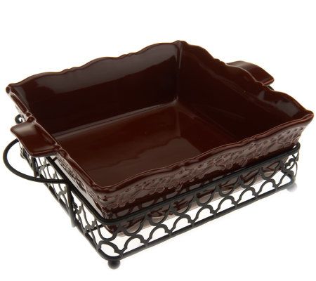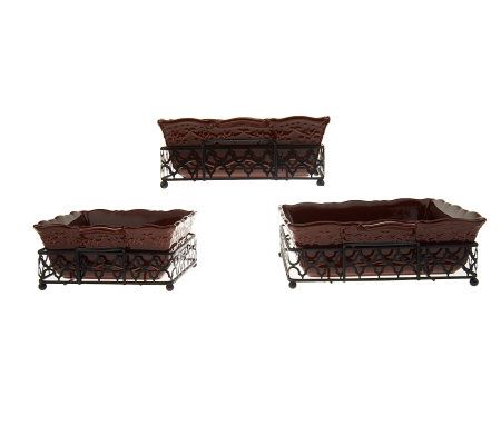 Make, bake, serve, and store. This six-piece set includes three square casserole dishes, each with matching rack and storage cover. That's enough for an appetizer, main course, and dessert! From Temp-tations(R) Ovenware.