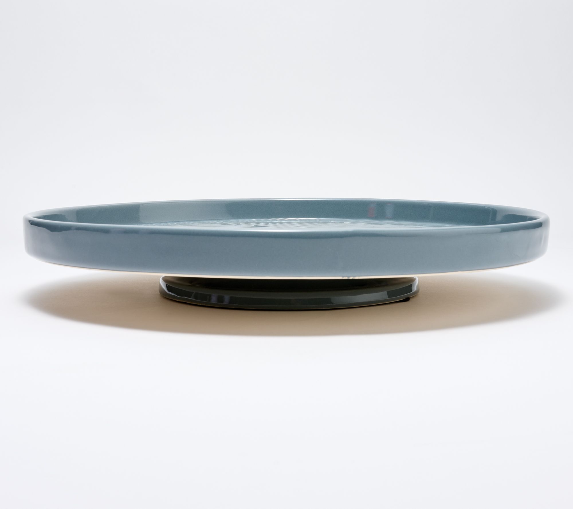 Serve cakes, pies, and homemade pizza in this deep-dish lazy Susan. Or use it to organize spices, condiments, and more on your kitchen countertop. From Temp-tations® Ovenware.