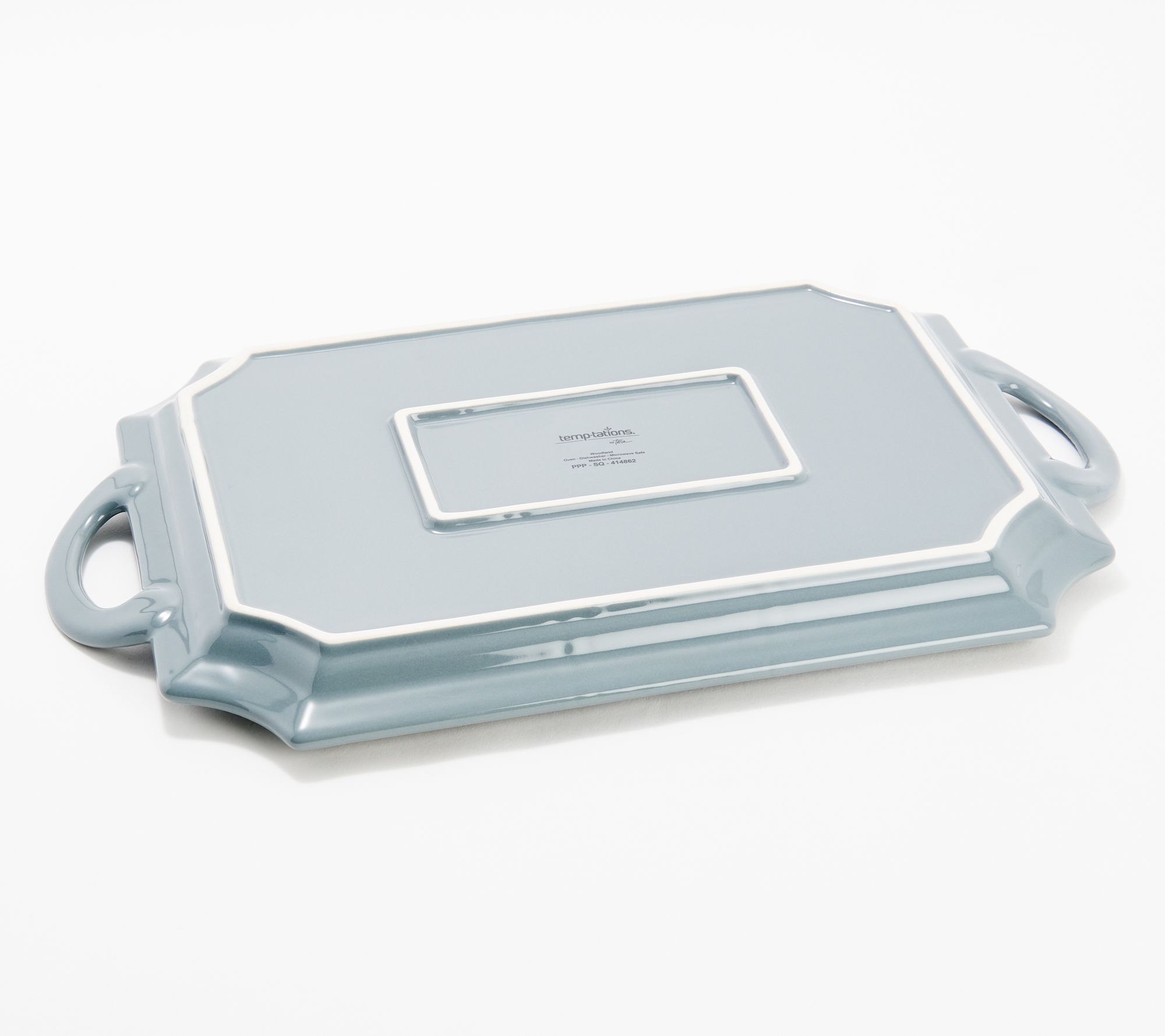 Serve appetizers, entrees, and desserts on this ceramic platter. Guests will swoon over the textured woodland design. From Temp-tations® Ovenware.