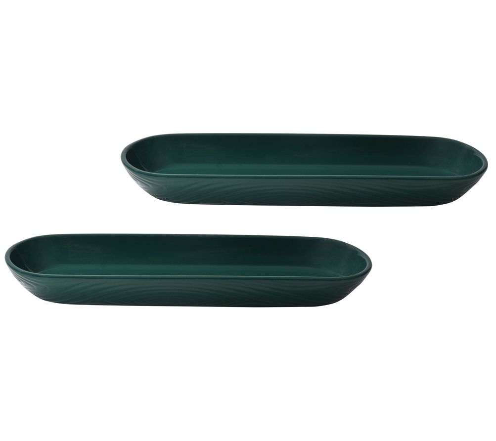 Elevate your dining/serving/celebrating experience with the Temp-tations set of two elongated trays. Ideal for serving appetizers, sides, or desserts (or fill one with wings and the other with celery and bleu cheese for game day), these ceramic trays make the perfect presentation. From Temp-tations® Ovenware.