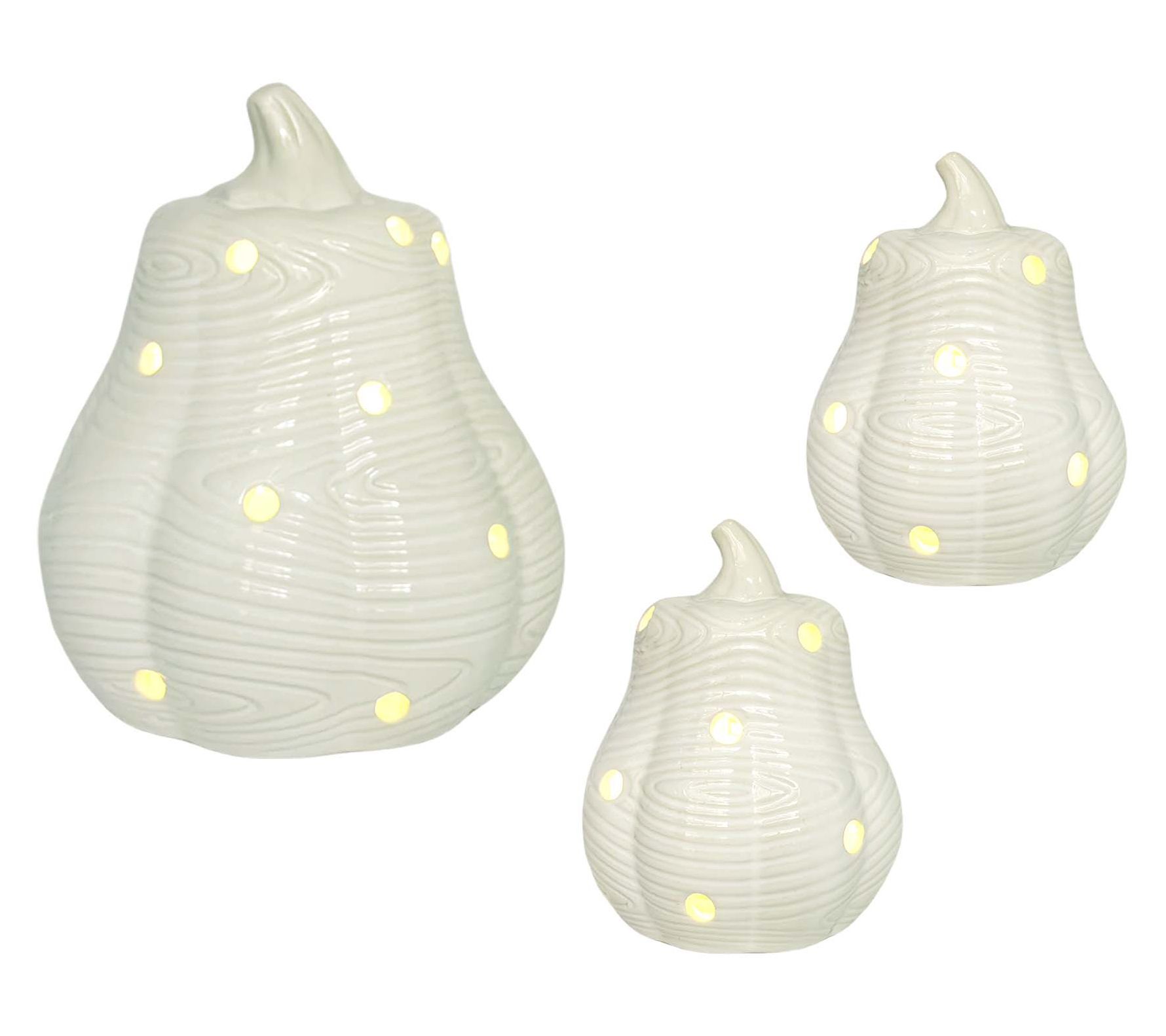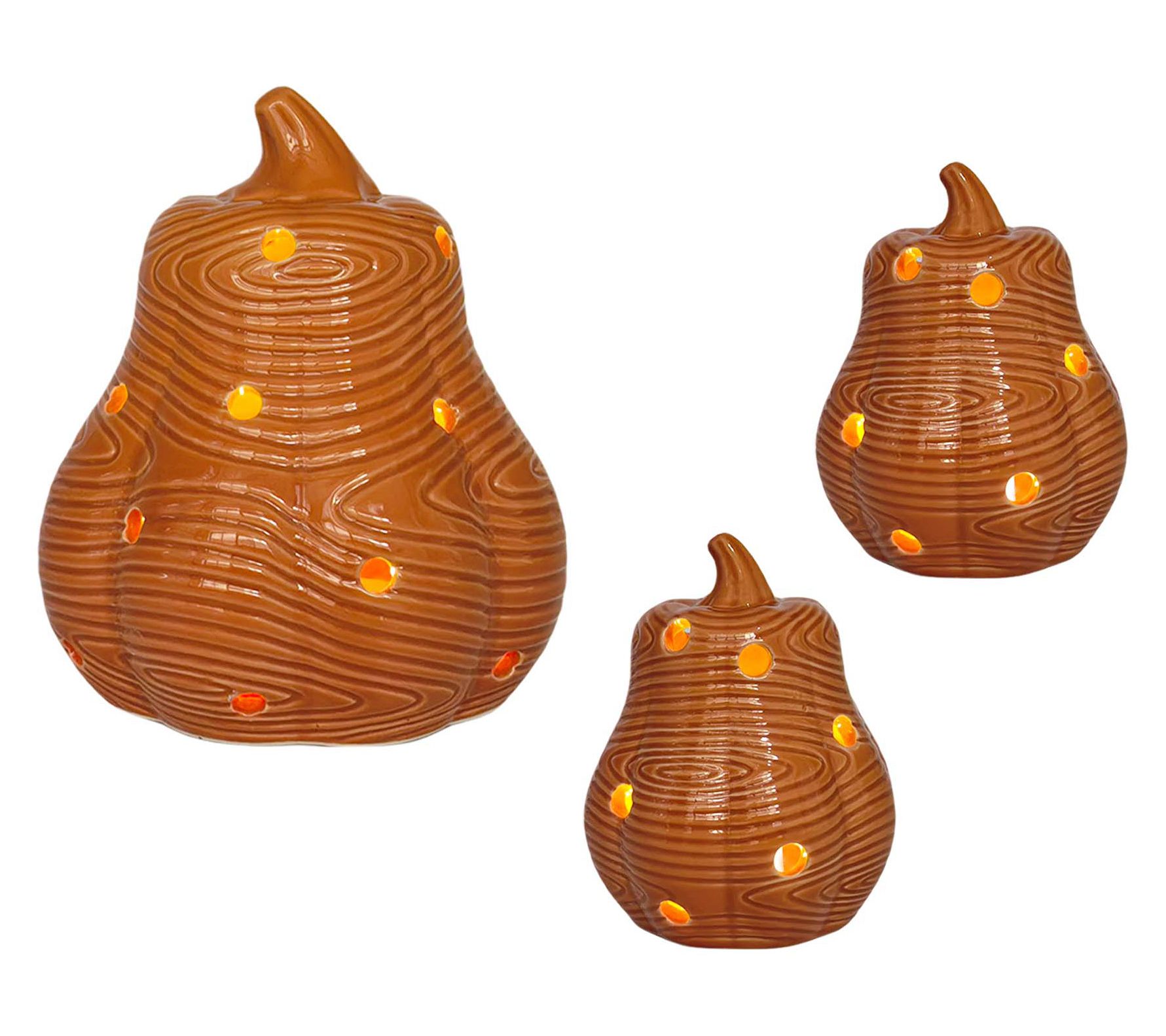 Hello, gourd-geous! A warm autumn glow transforms your living room when you place this set of illuminated ceramic gourds on a side table or windowsill. Softly lit from within, the woodland-inspired accents bring cozy vibes and seasonal charm to your home, whether welcoming guests or relaxing by candlelight. From Temp-tations®.