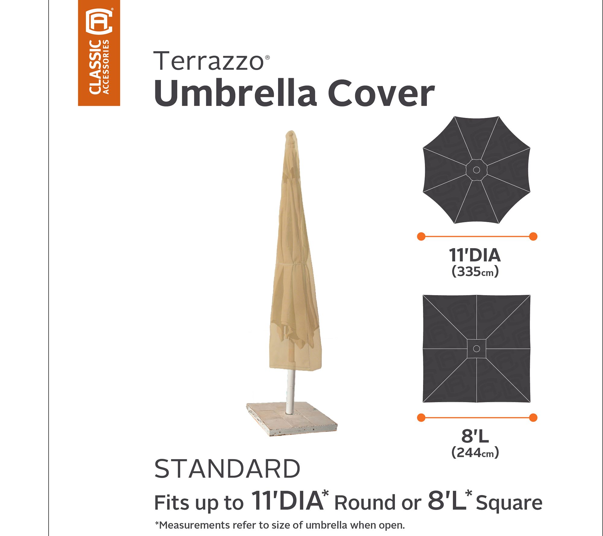 • Fits 11"Diam round umbrellas and 8" x 8" square umbrellas