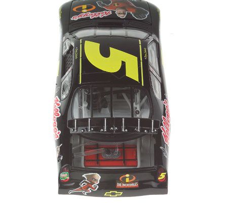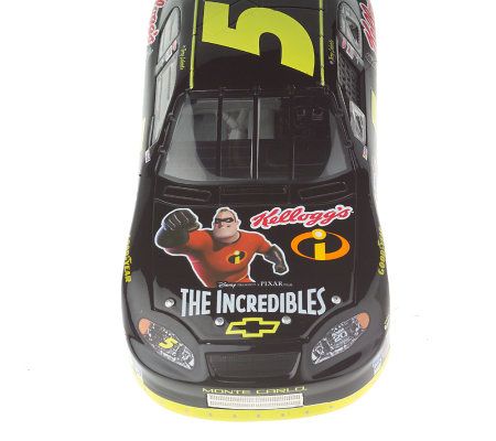 Terry Labonte is racing into Phoenix to show off his super powers! Texas Terry drove a special black #5 car commemorating the release of the critically acclaimed film "The Incredibles." Watch as he heads to the front of the pack with this 1:24 scale Kellogg's/The Incredibles 2004 Chevrolet Elite Car. The black, red, and yellow paint scheme was raced on November 7, 2004.
