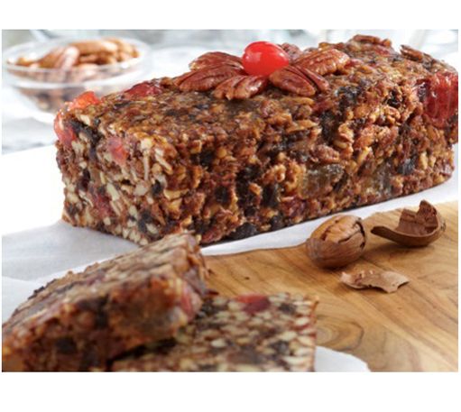 • A blend of Texas pecans, chopped dates, cherries, and pineapple