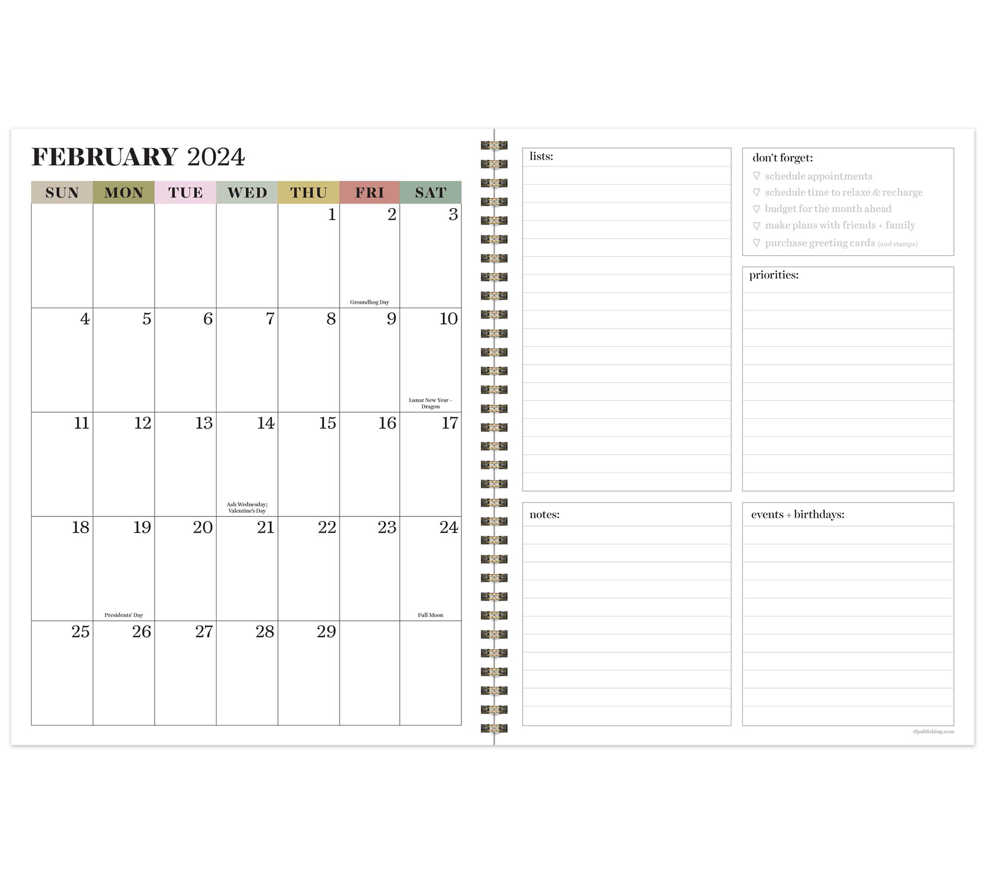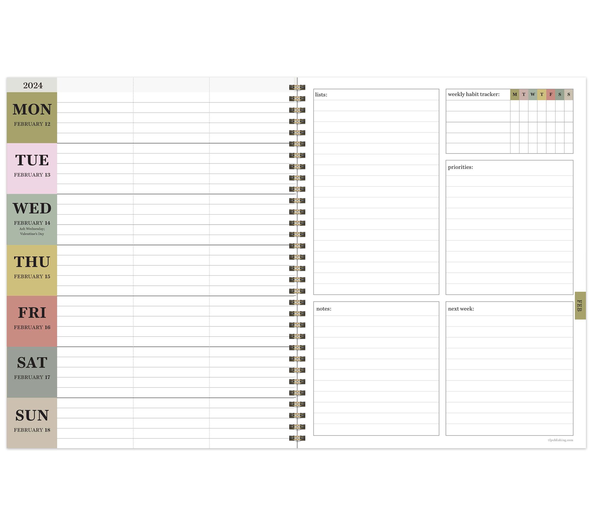 • Two-page weekly spreads