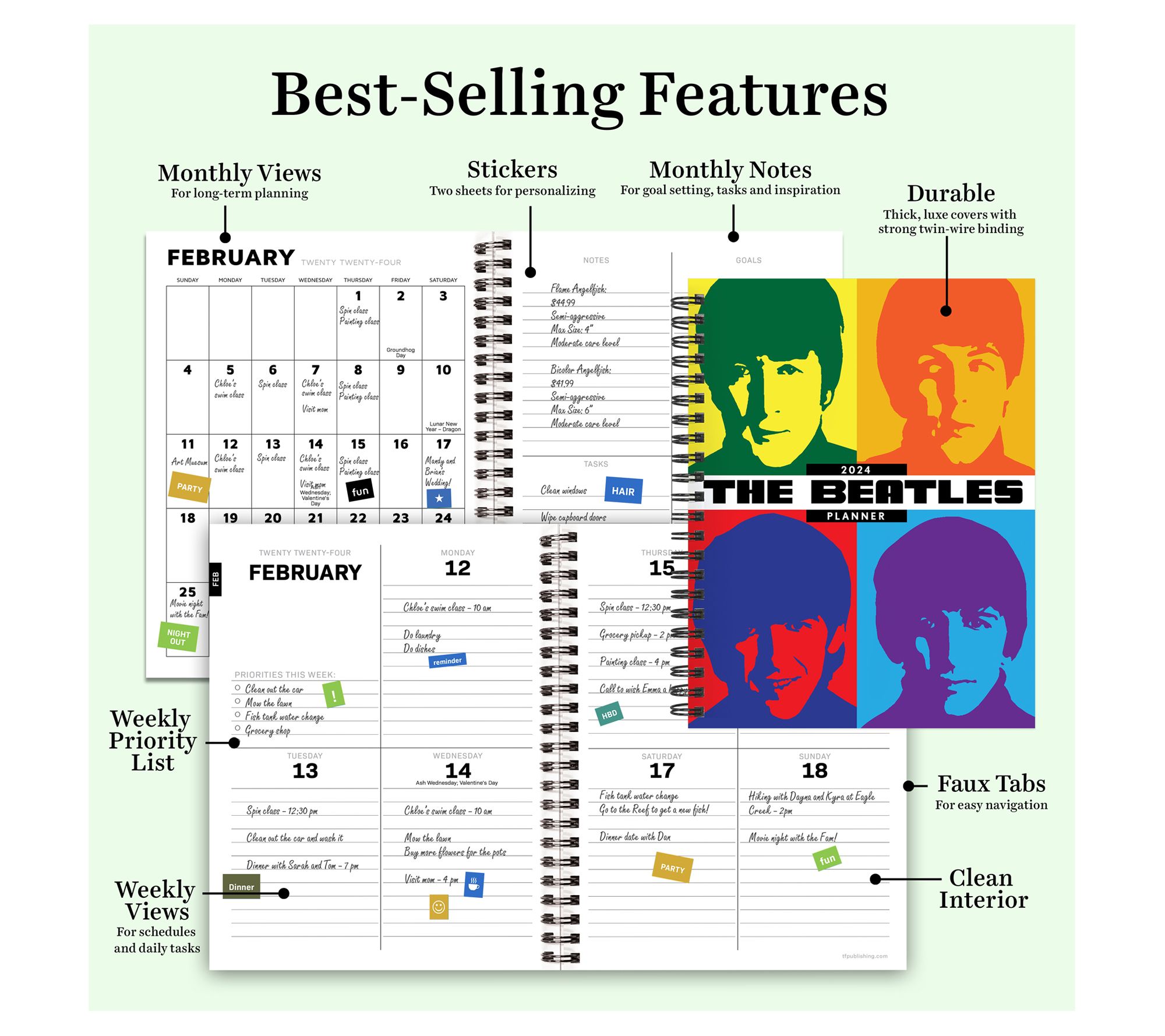 • Includes 12-month 2024 planner with 216 coordinating stickers