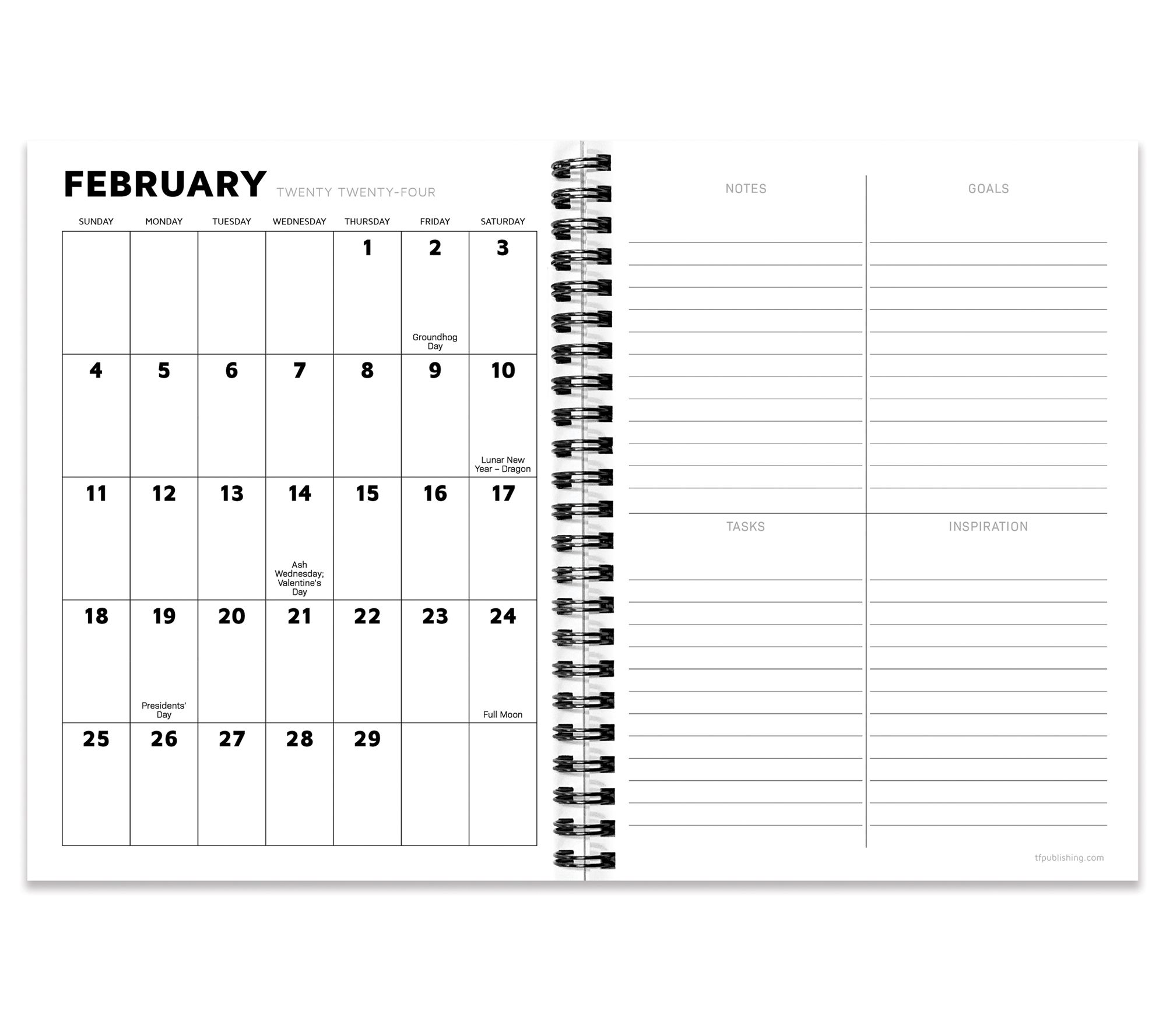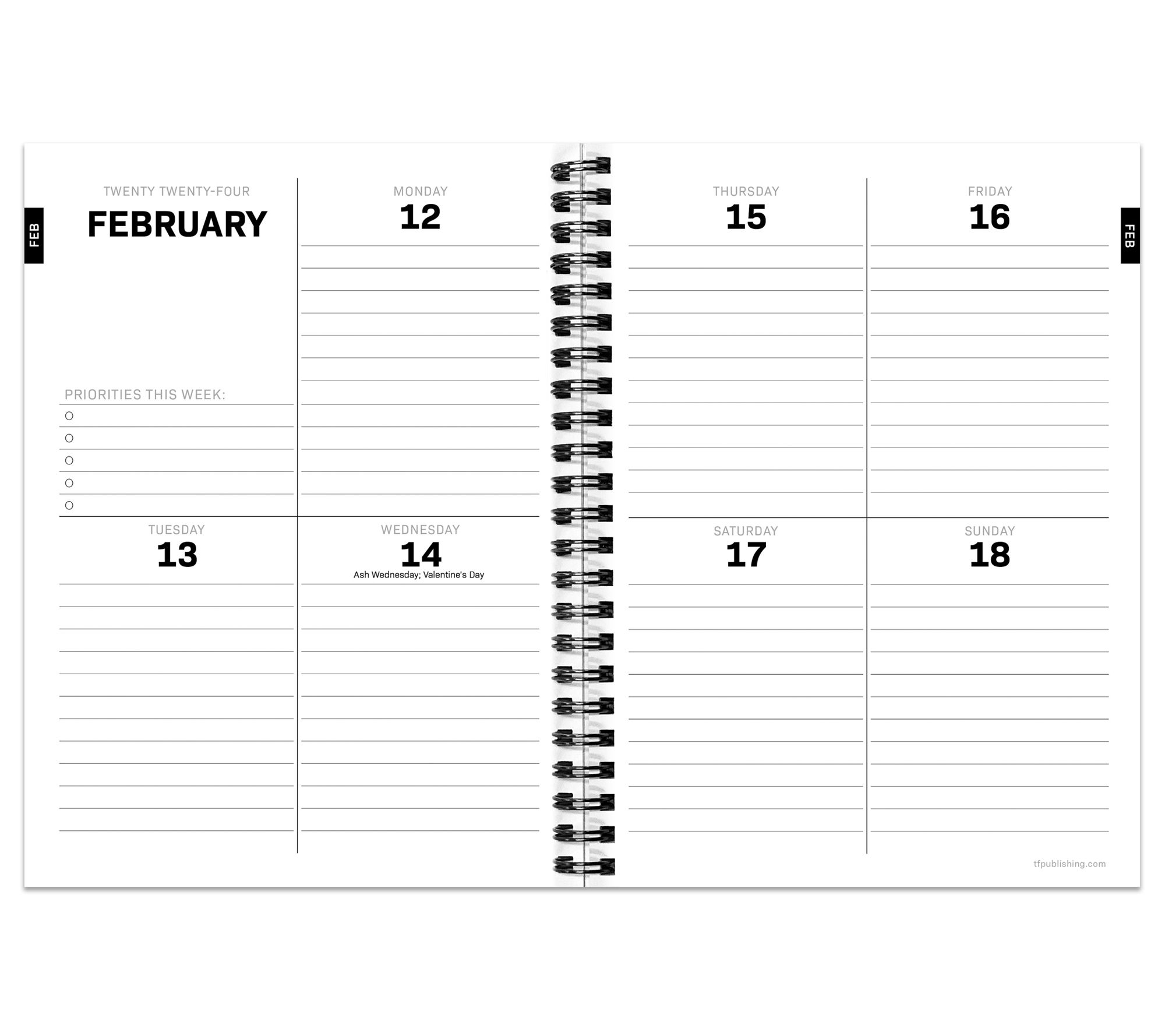 • Two-page monthly spreads