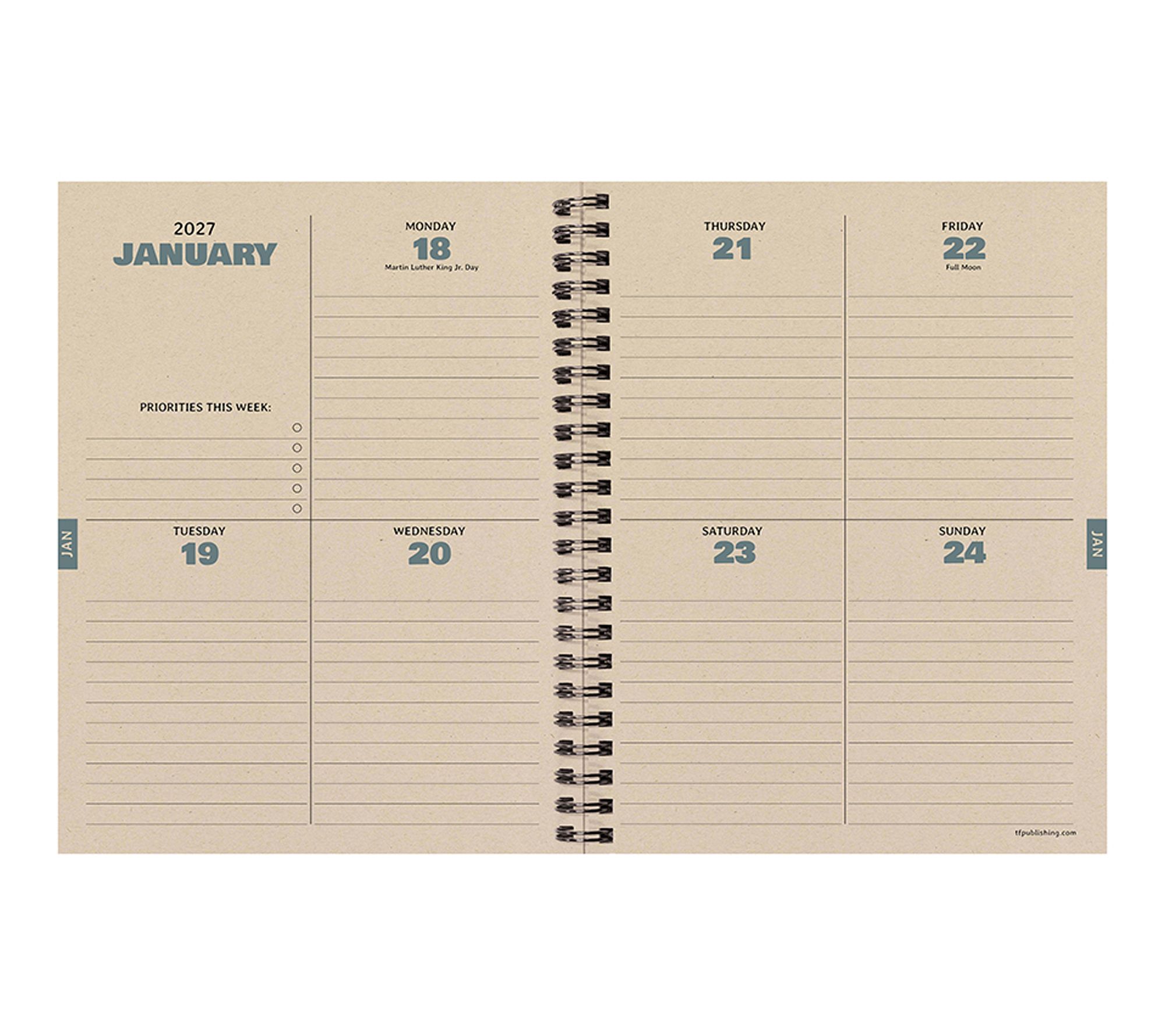 • Bonus lined notes pages in the back; yearly 2026 and 2027 views at the front