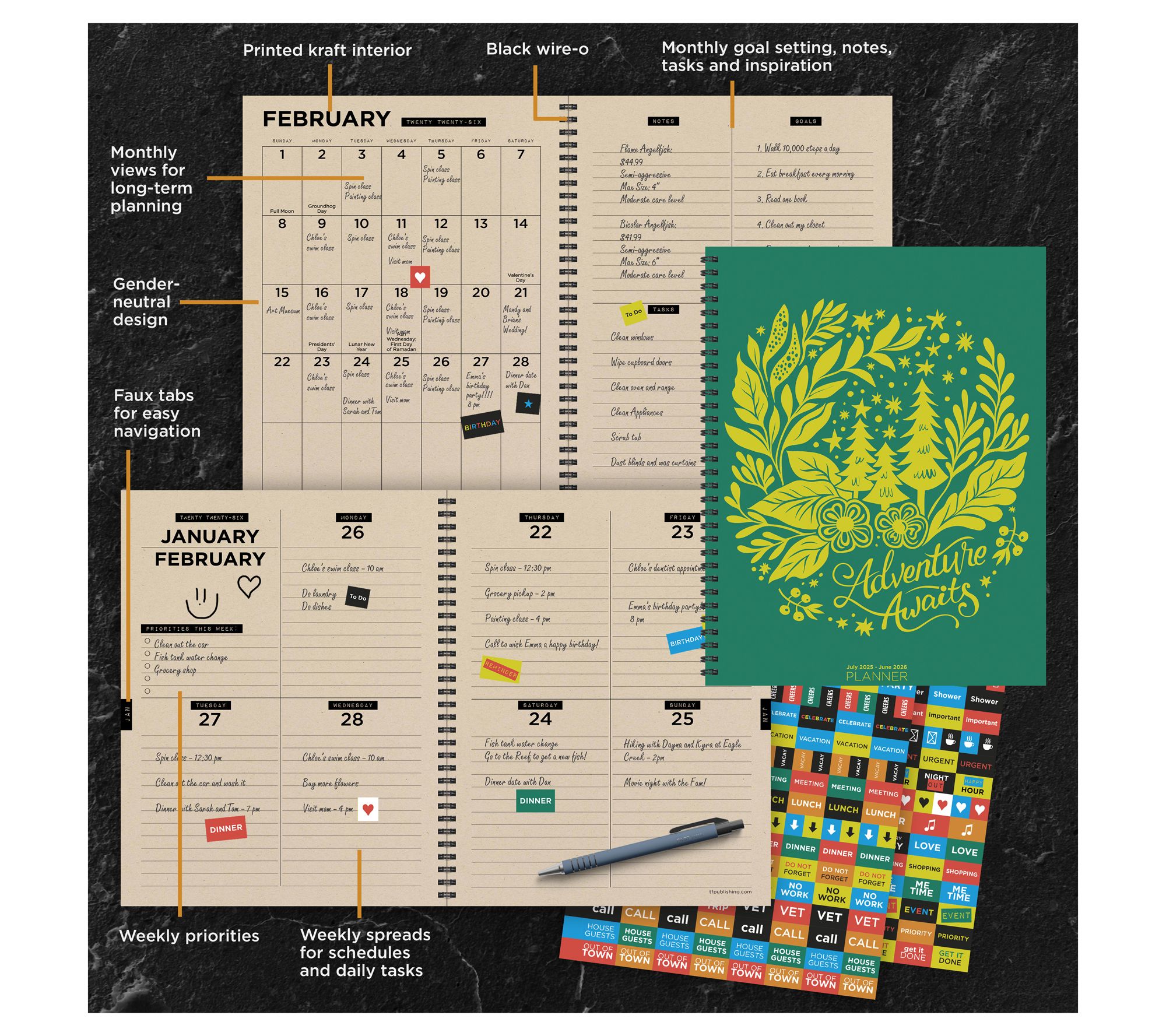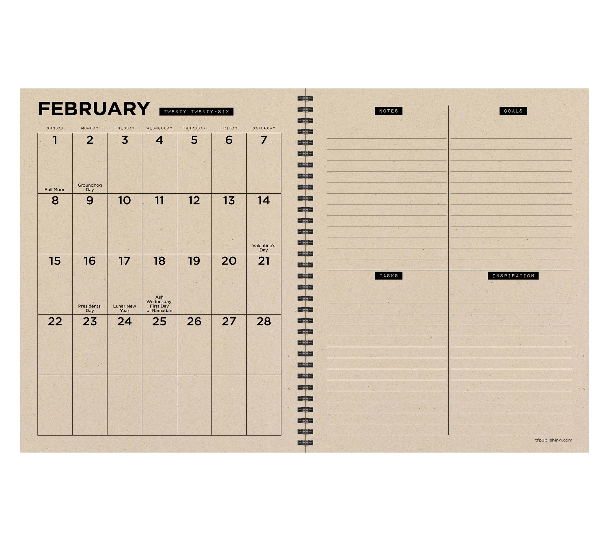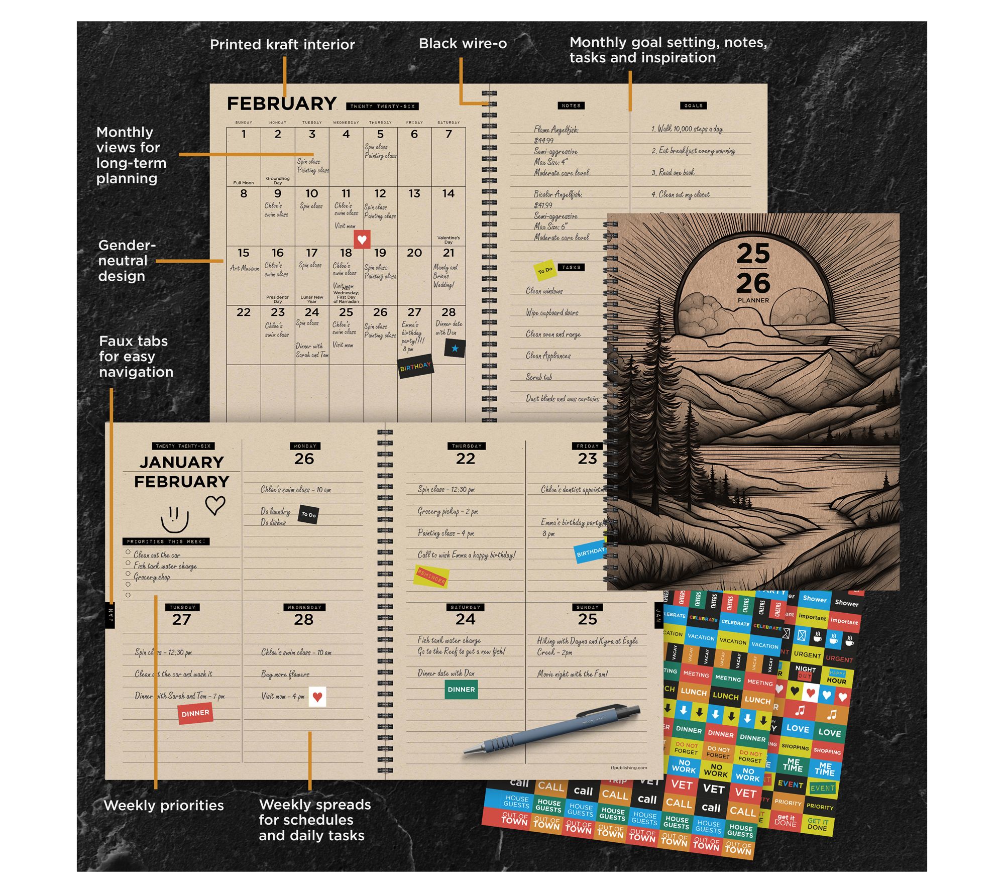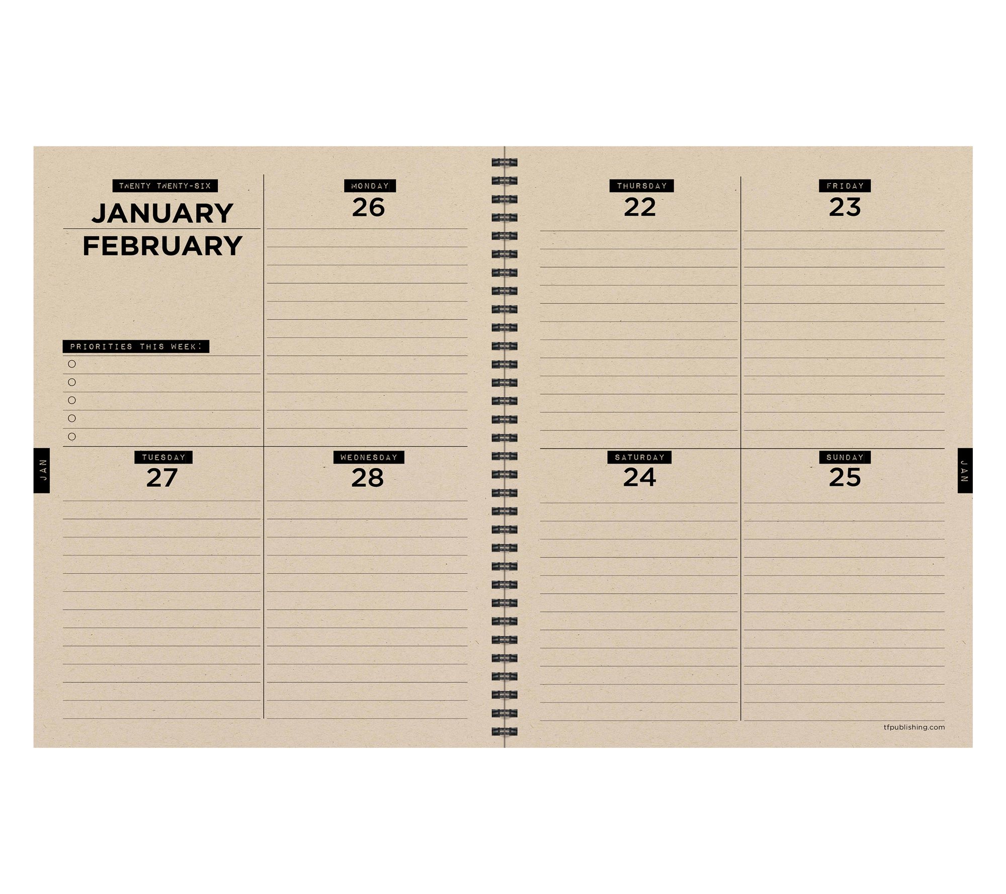 • Includes TF Publishing July 2025 - June 2026 large weekly/monthly planner